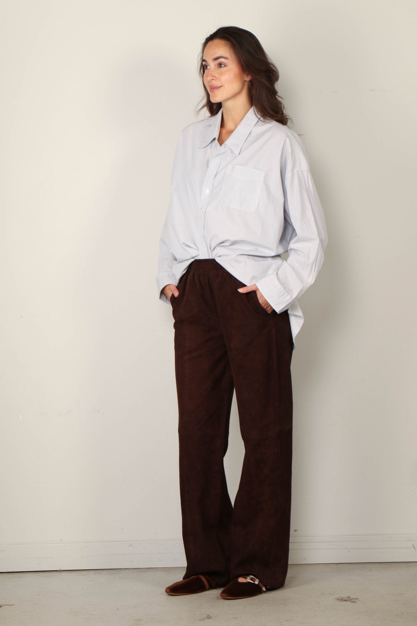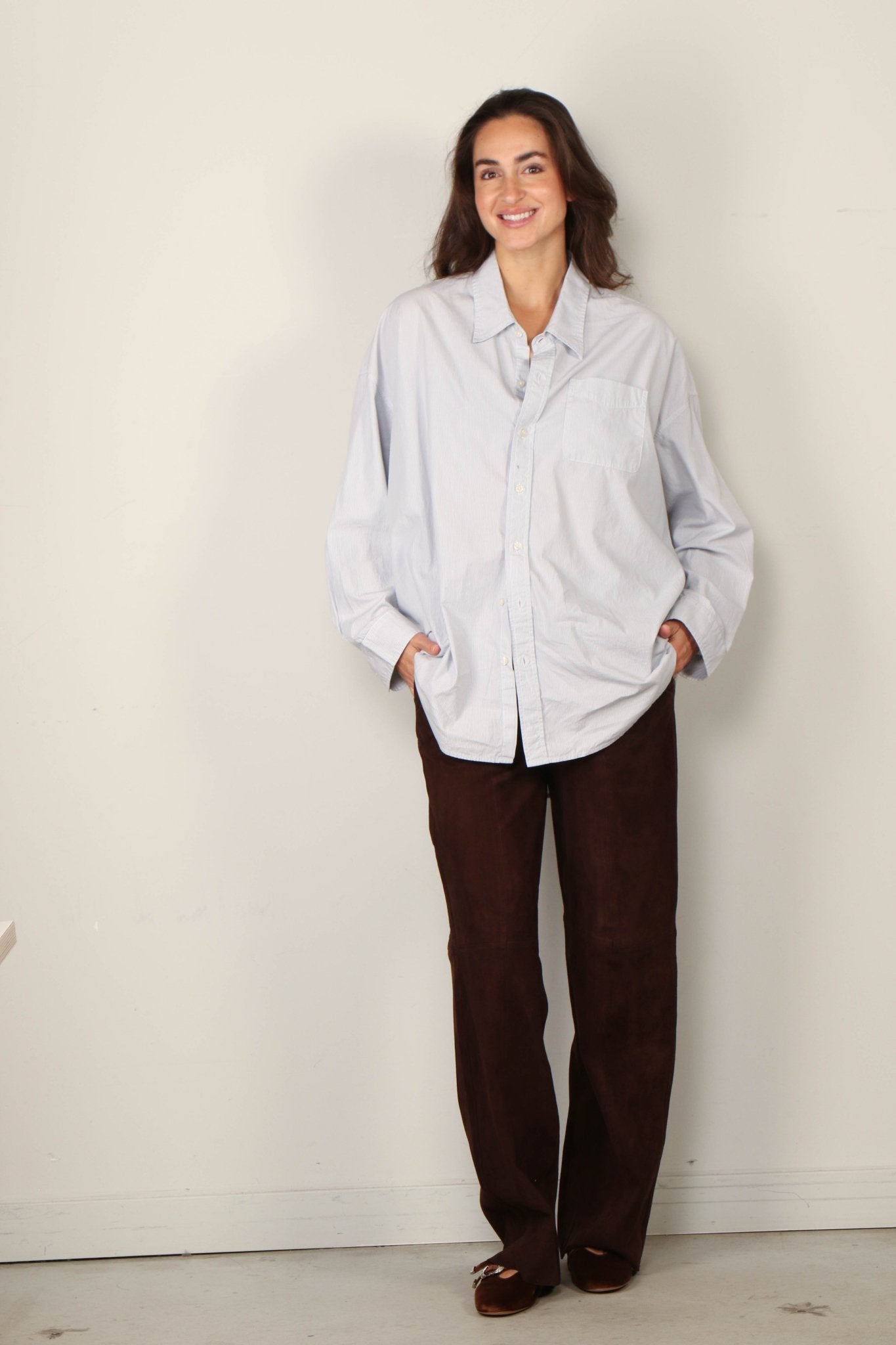 R13 Blouse - DROP NECK OXFORD SHIRT - Blue with Pinstripe