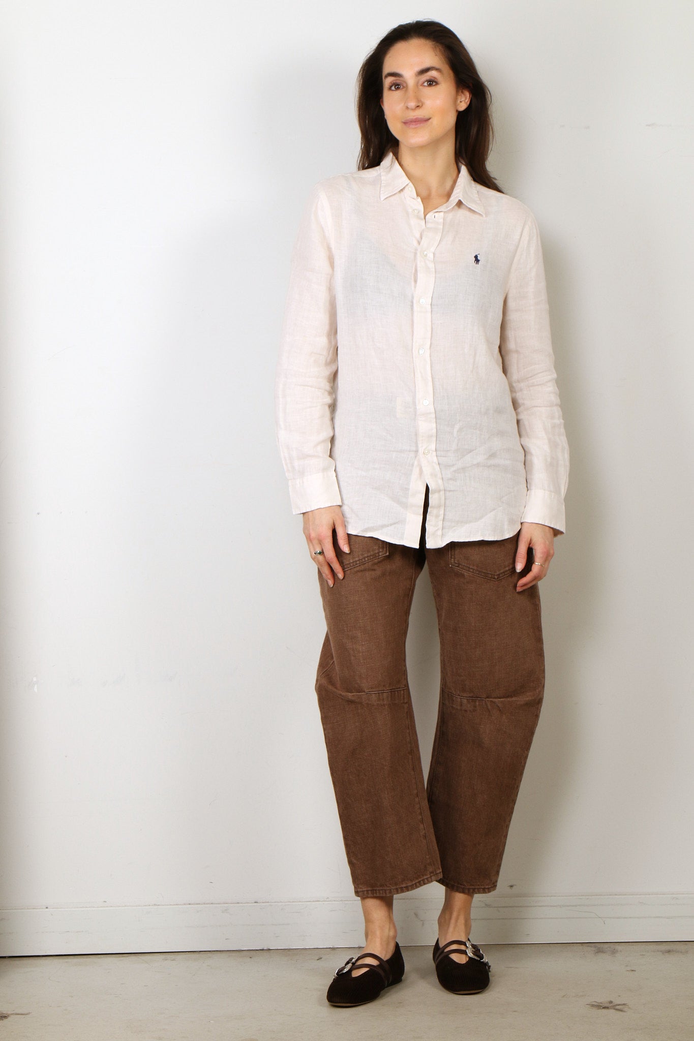 Ralph Lauren Blouse - Classic Long Sleeve Button Front Shirt - Antique Cream