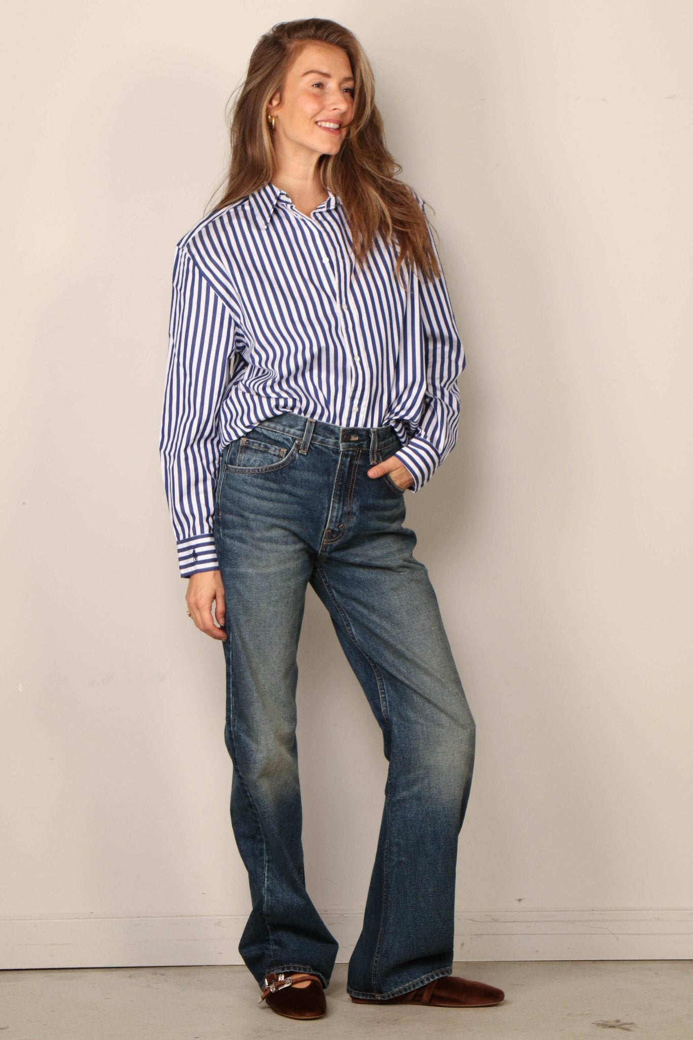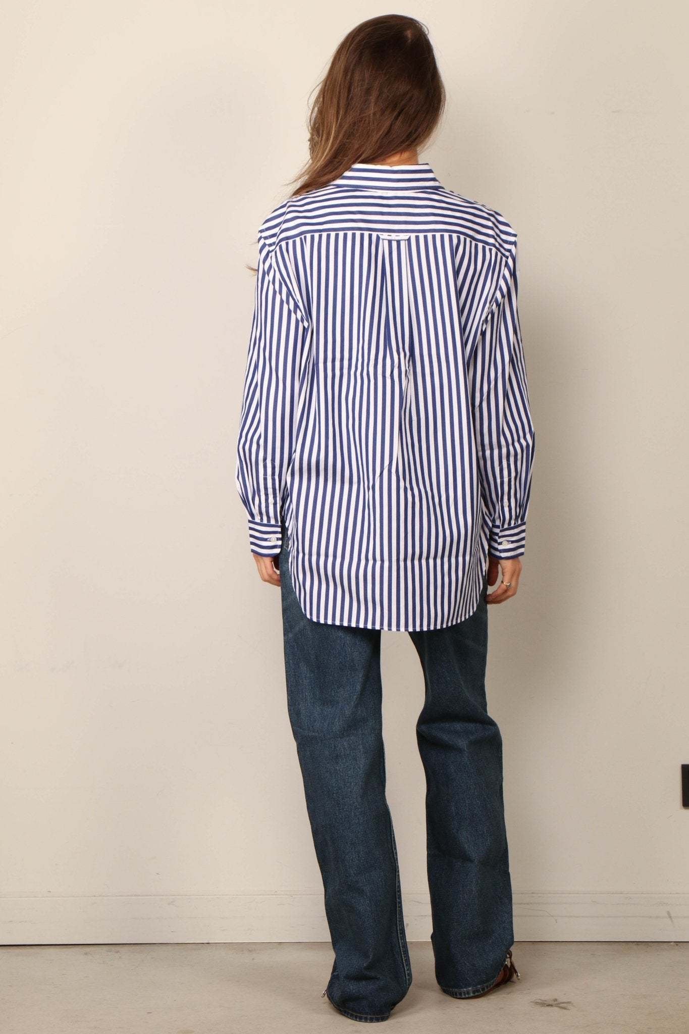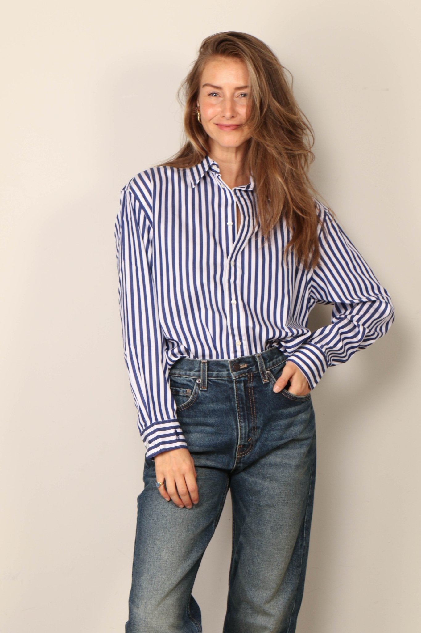 Ralph Lauren Blouse- Ls ligh st long sleeve button front shirt - Royal/White