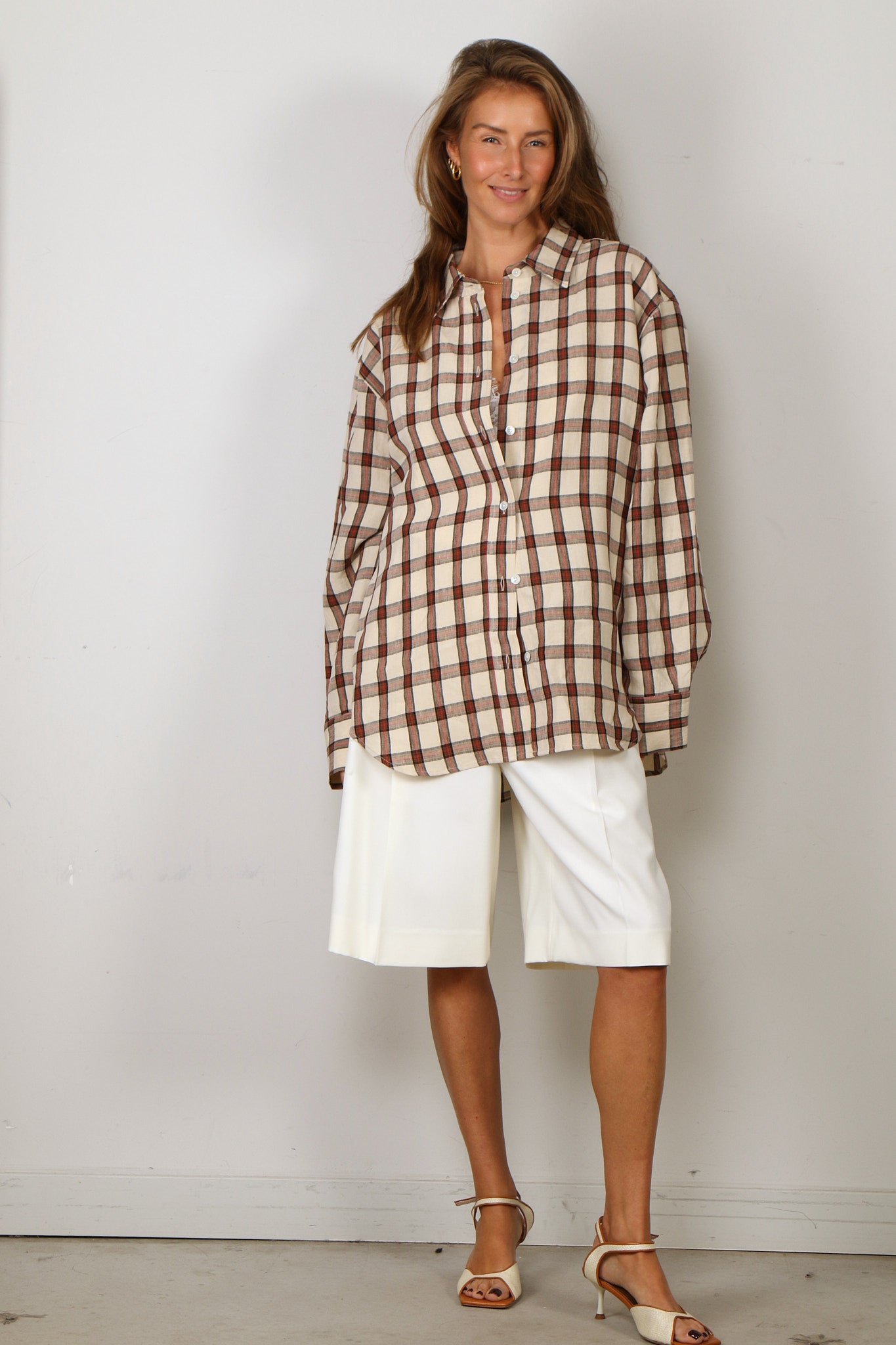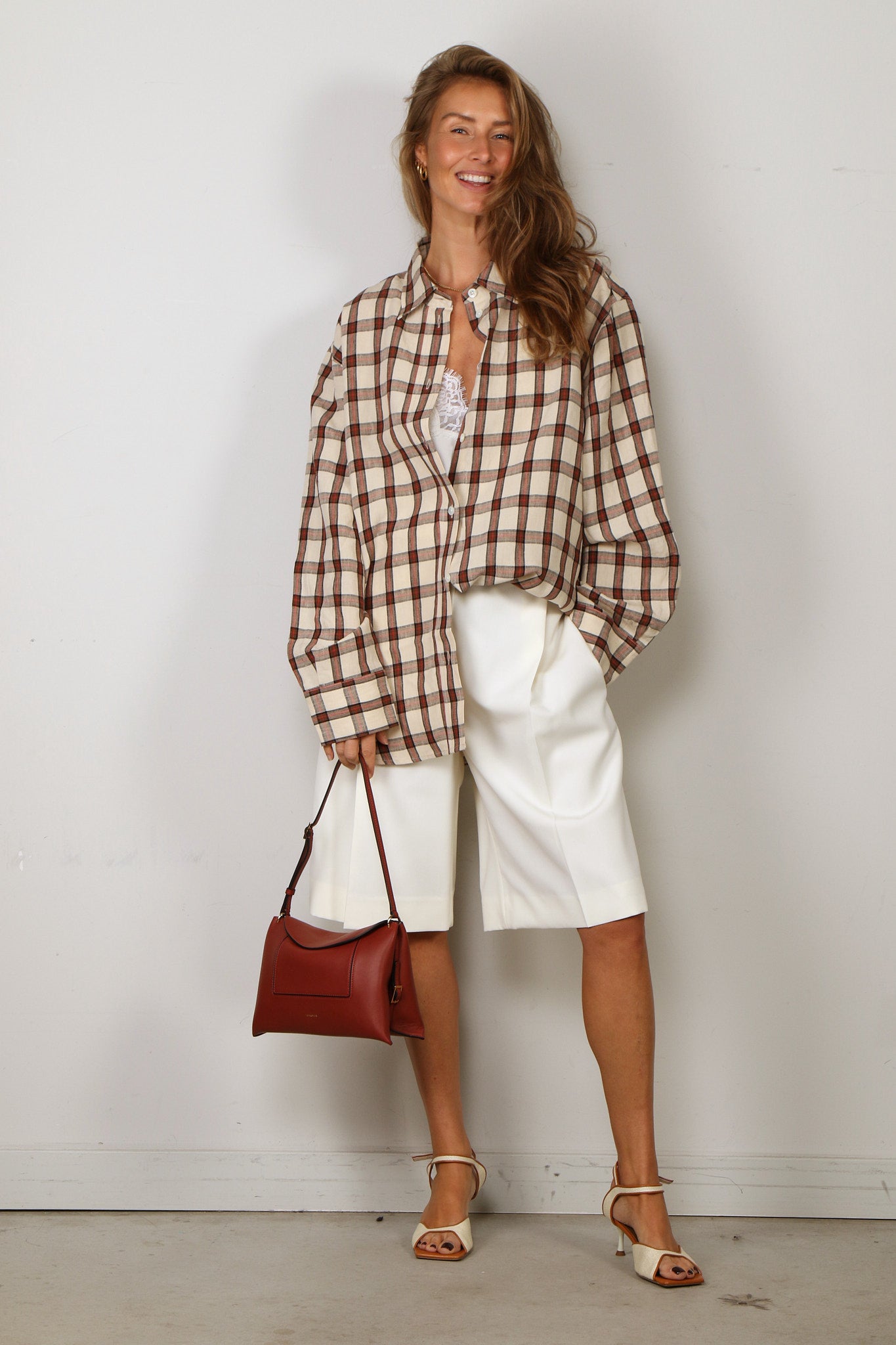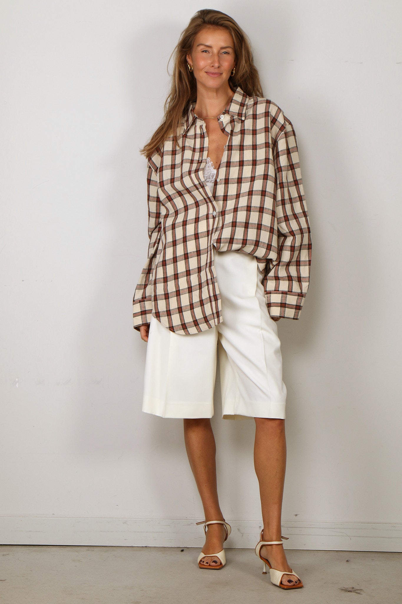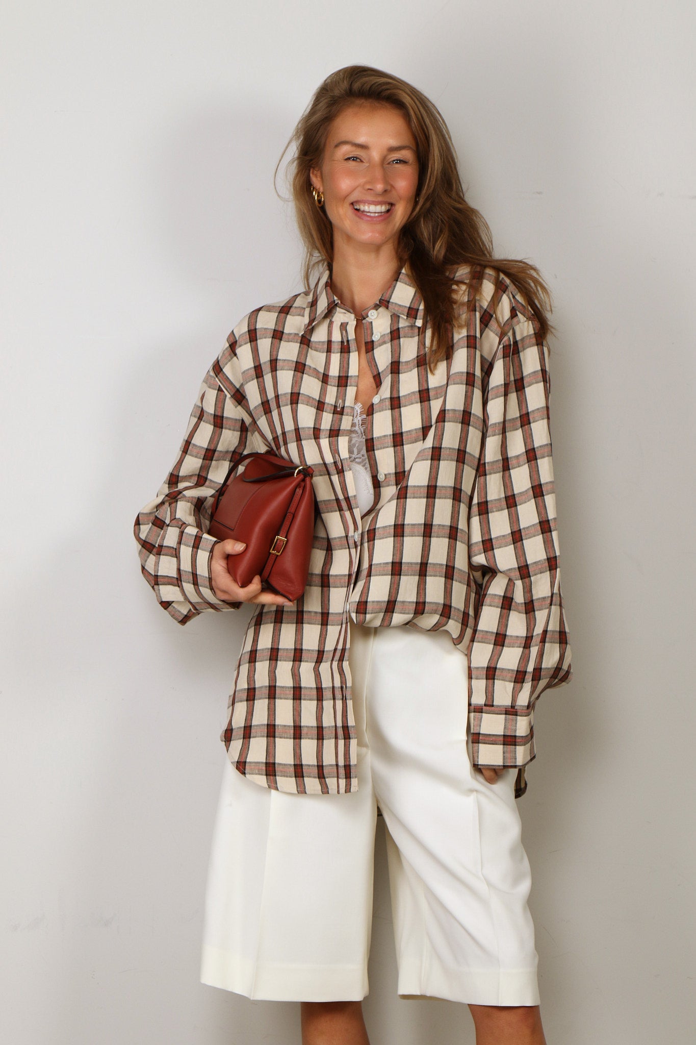 RÓHE Blouse - Oversized Check Shirt - Red Table Check