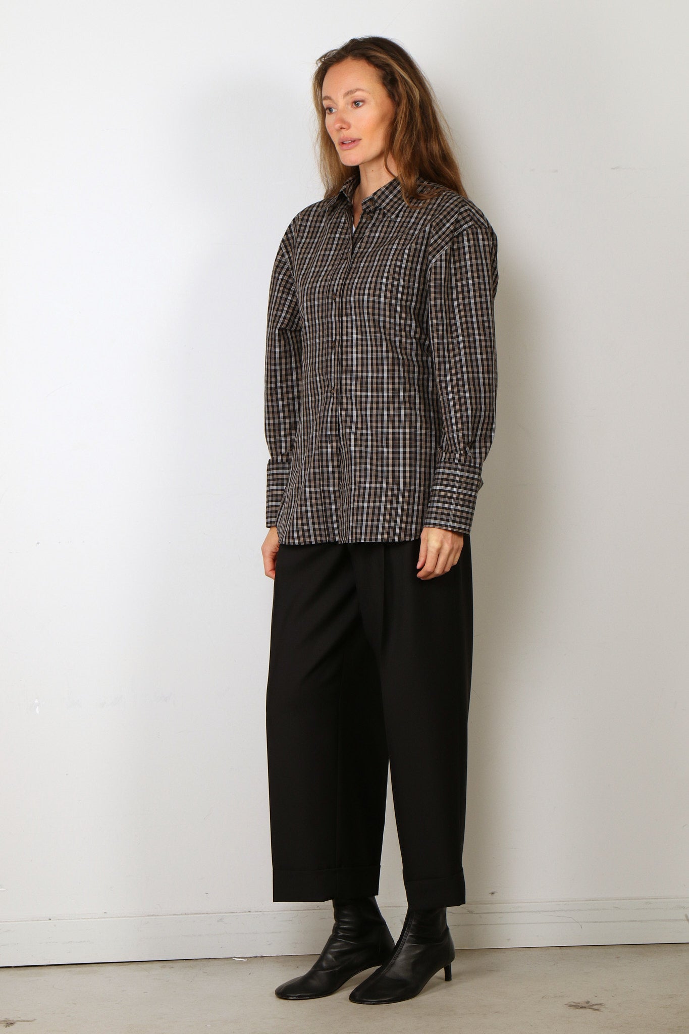 RÓHE Blouse - Shaped Check Shirt - Black / Brown Check