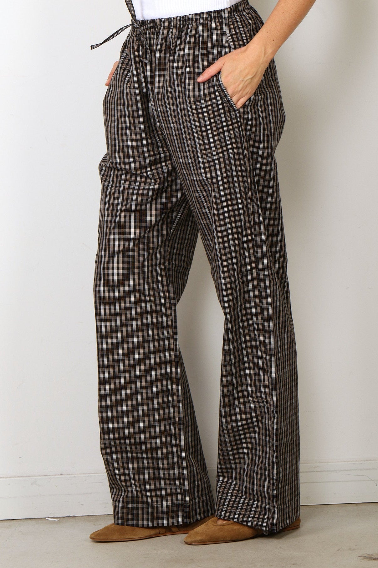 Rohe Broek - Relaxed Fit Checked Trousers - Black / Brown Check