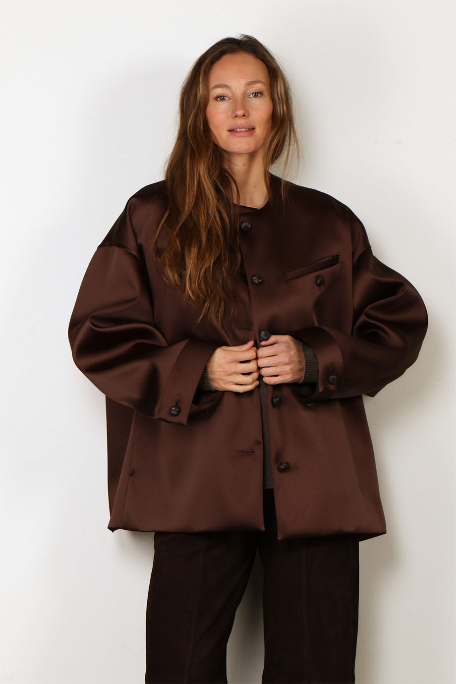 RÓHE Jacket - Volume Satin Jacket - Espresso
