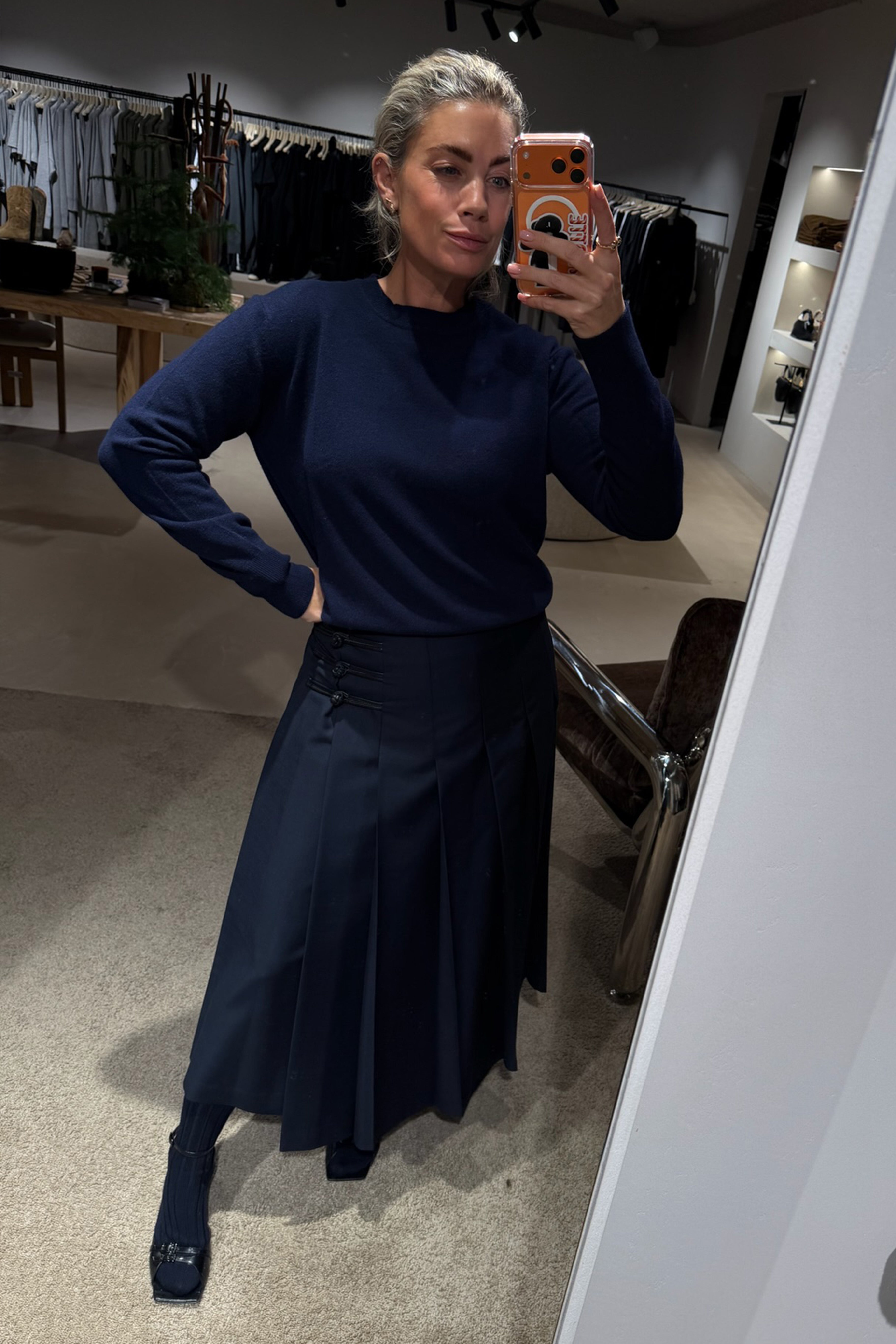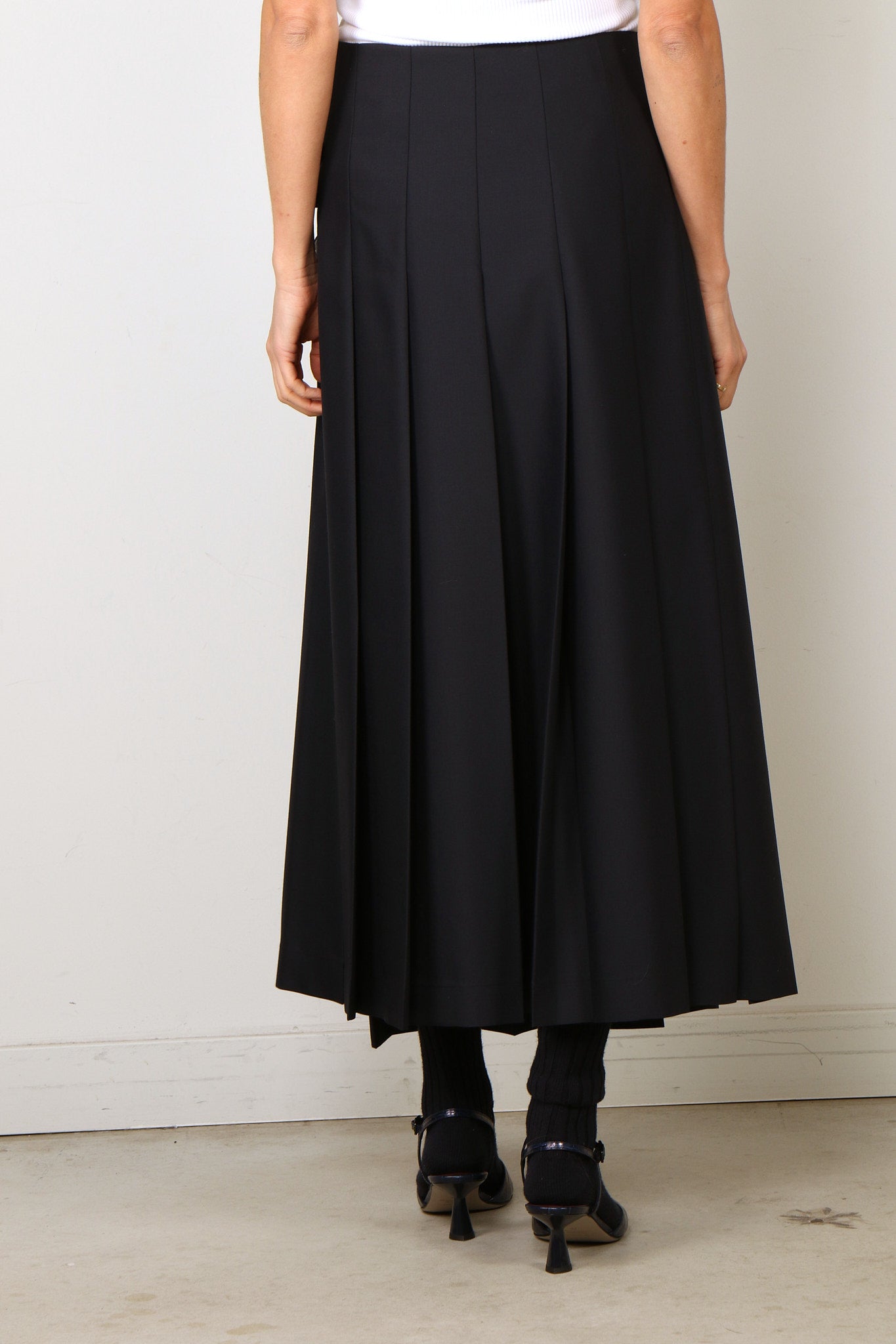 Rohe Rok - Mandarin Pleated Wool Skirt - Navy