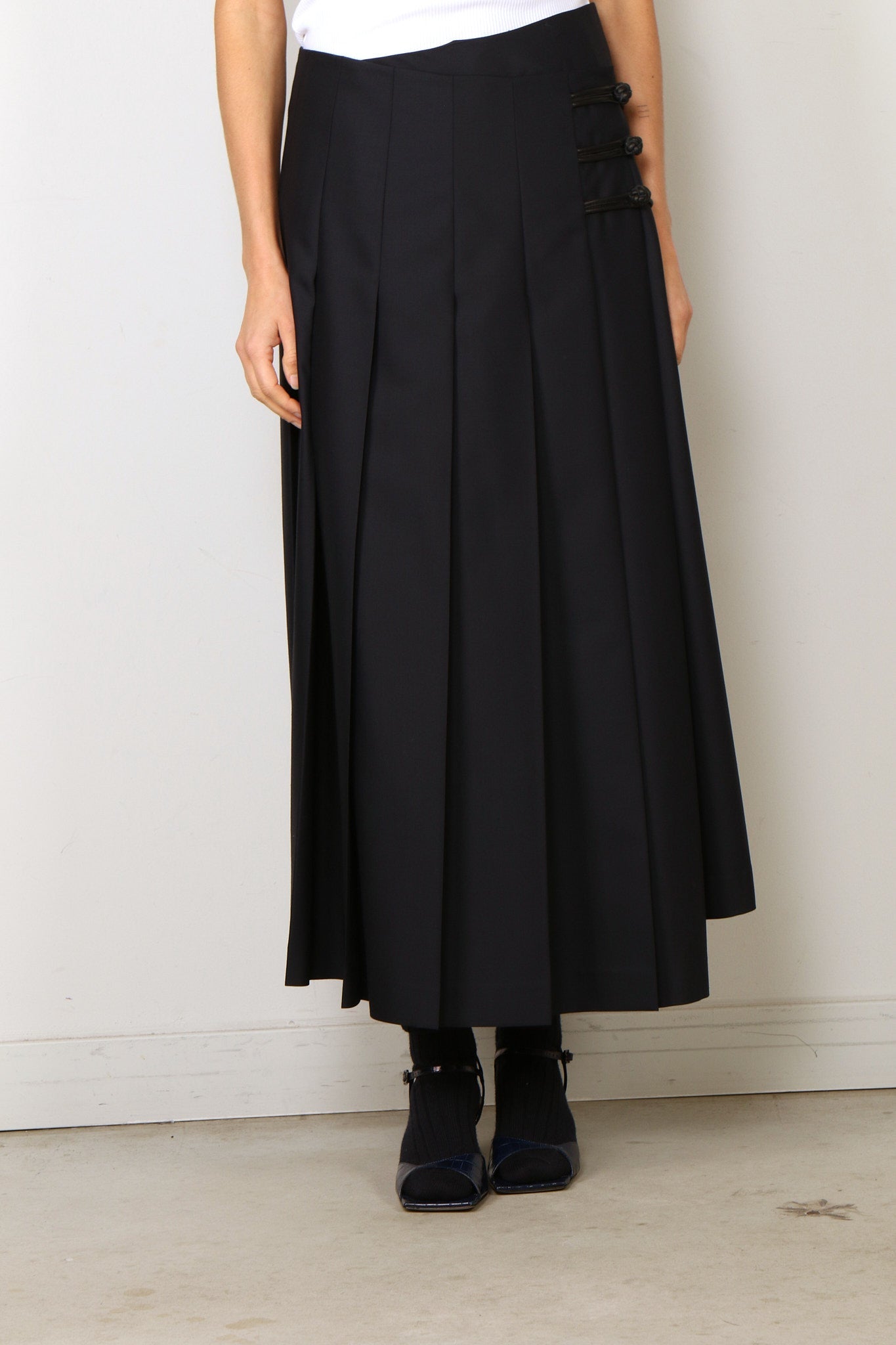 RÓHE Rok - Mandarin Pleated Wool Skirt - Navy