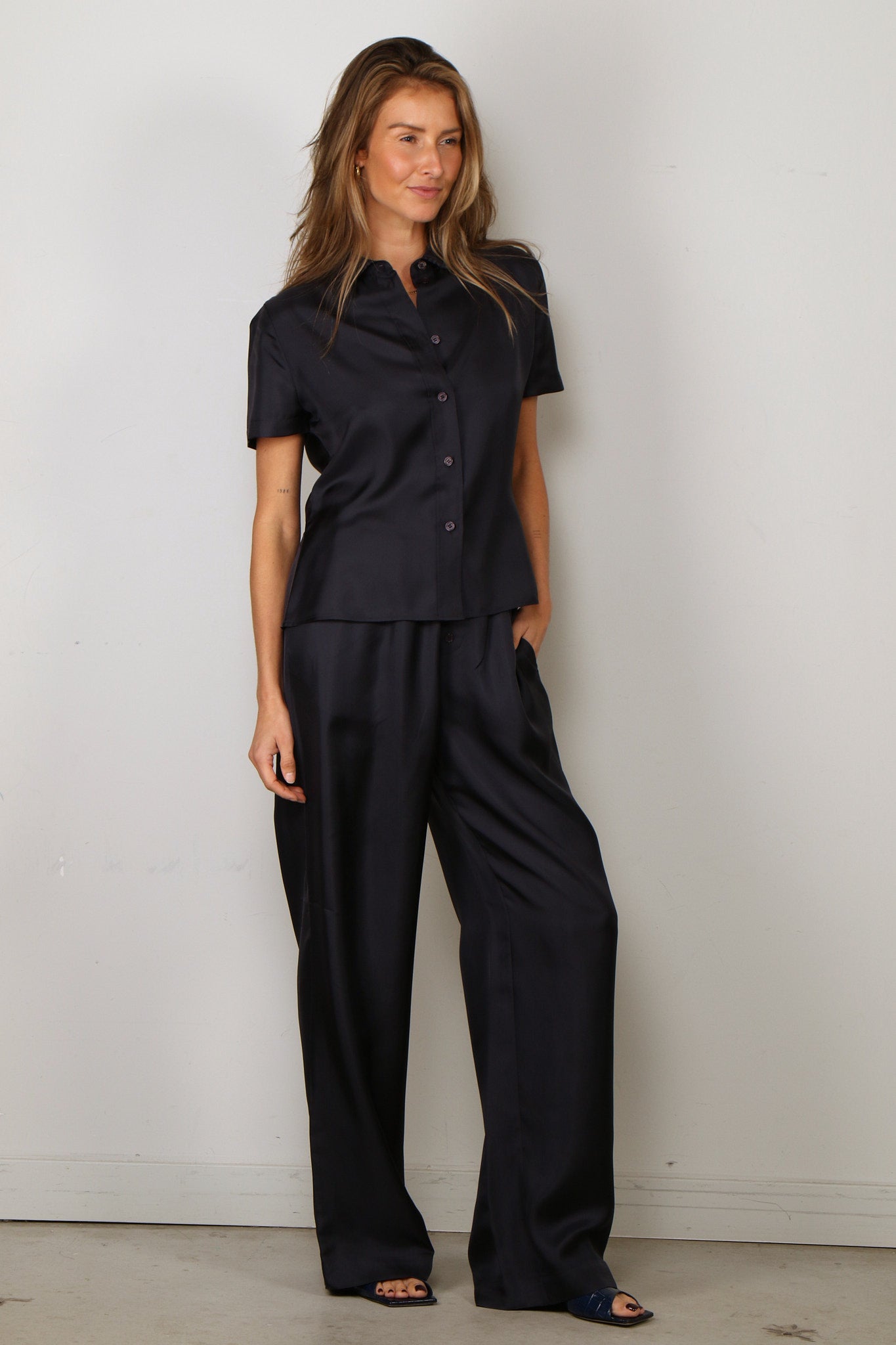 RÓHE Top - Embroidered Silk Fitted Shirt - Night
