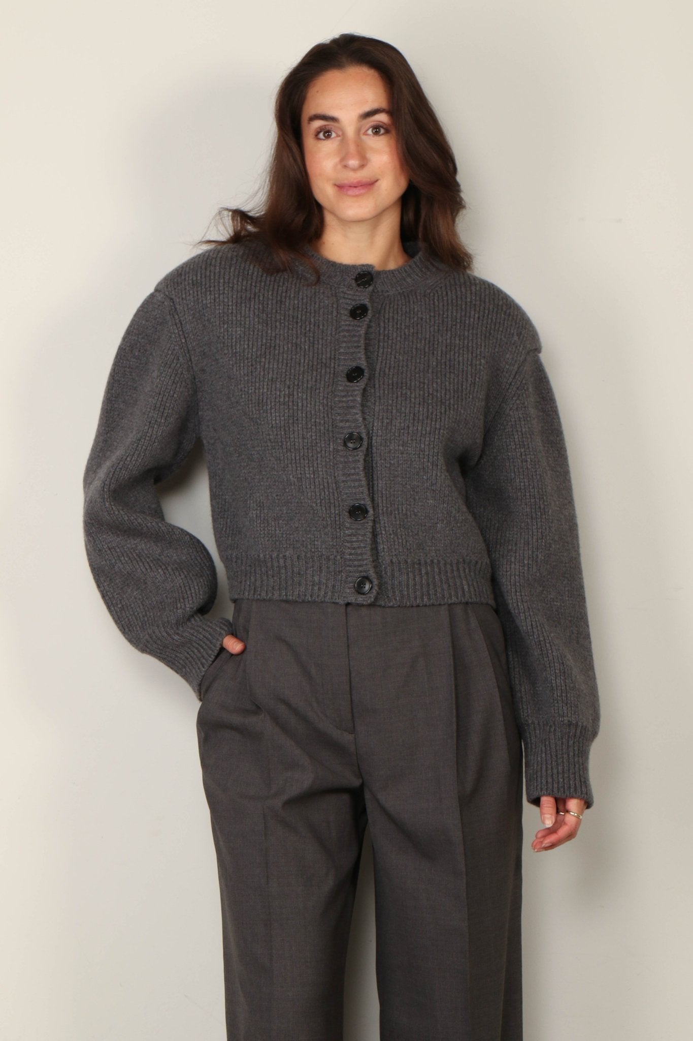 Rohe Vest - Knitted Statement Padded Cardigan - Mid Grey Melange