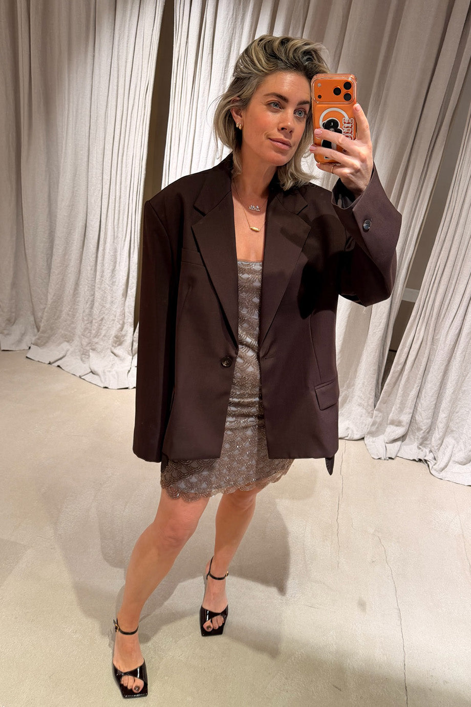 - De rok is gevoerd, waardoor hij bedekkend is en tegelijkertijd het paillettenpatroon benadrukt
