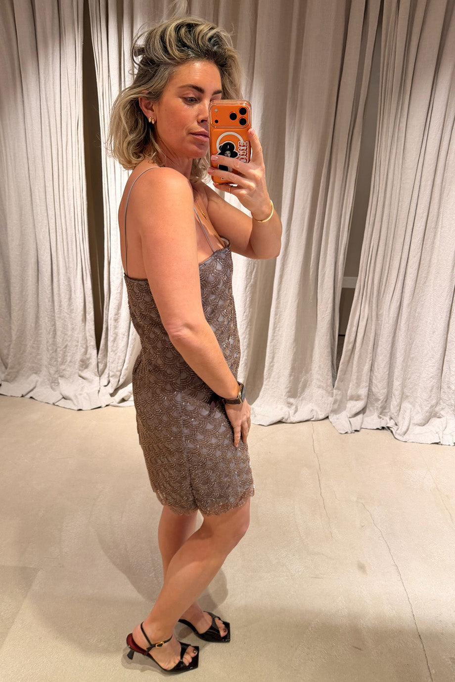 Rotate Jurk - Scallop Sequin Mini Dress - Gull Grey