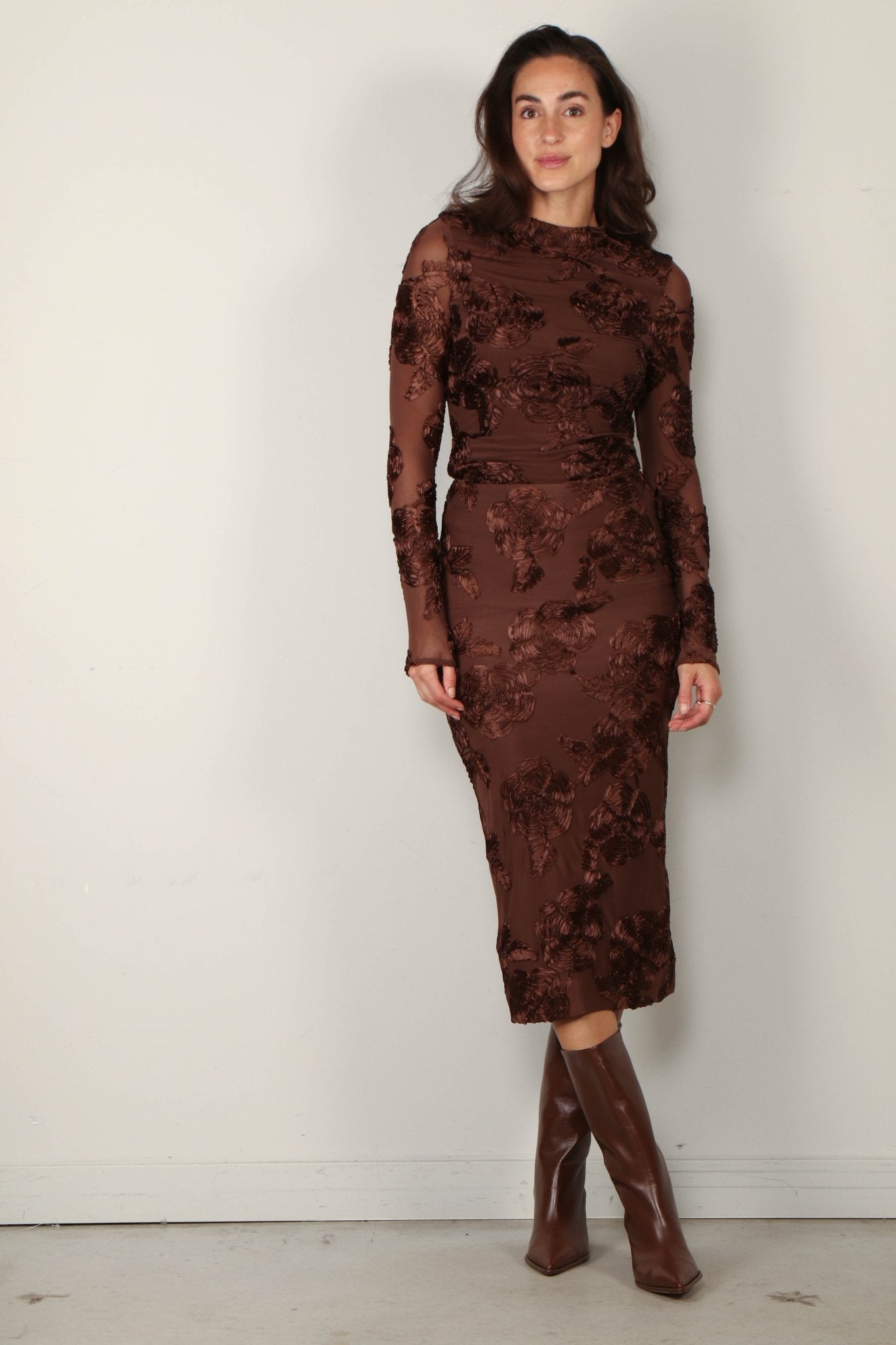 Rotate Rok - Flower Mesh Pencil Skirt - Chicory Coffee