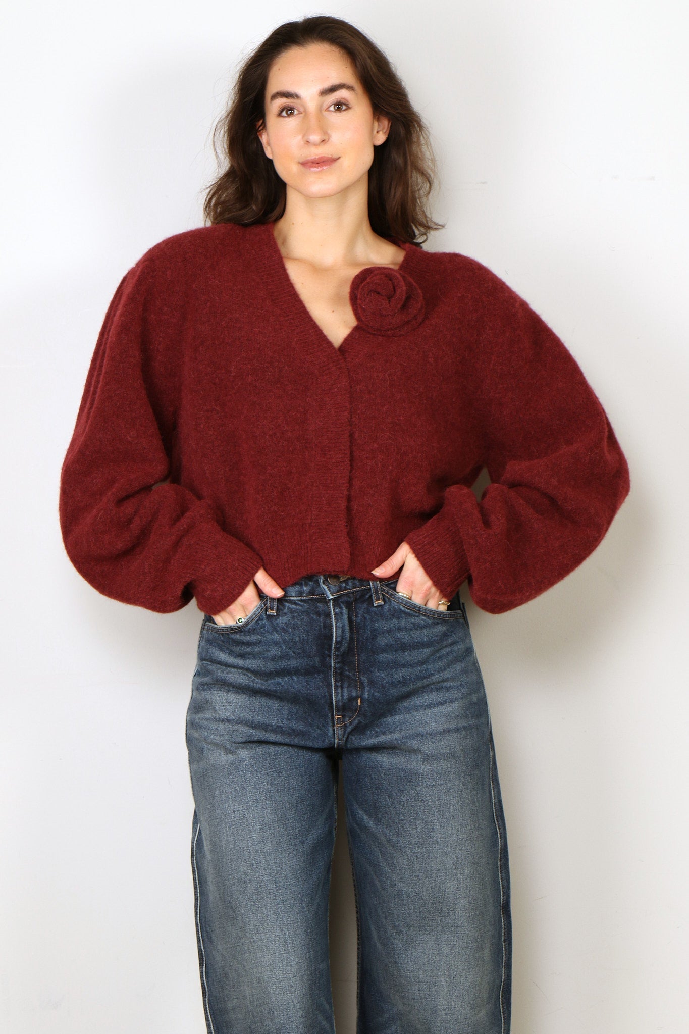 Rotate Vest - Knit Puffsleeve Cardigan - Zinfandel