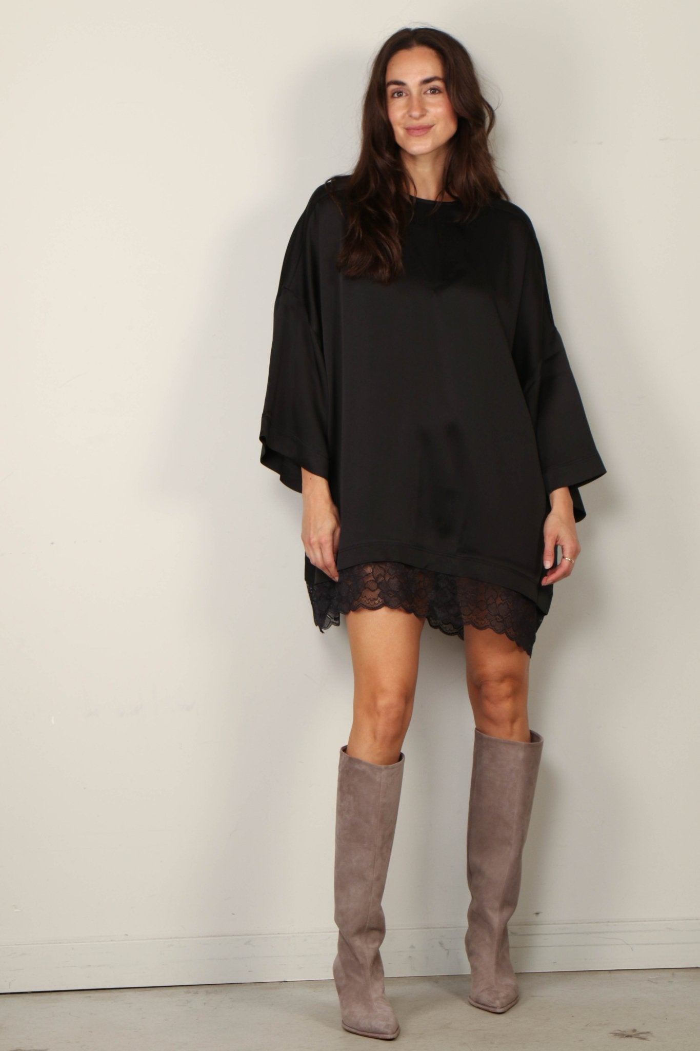 Sea Me Happy Jurk - Eloise Dress Satin Lace - Black