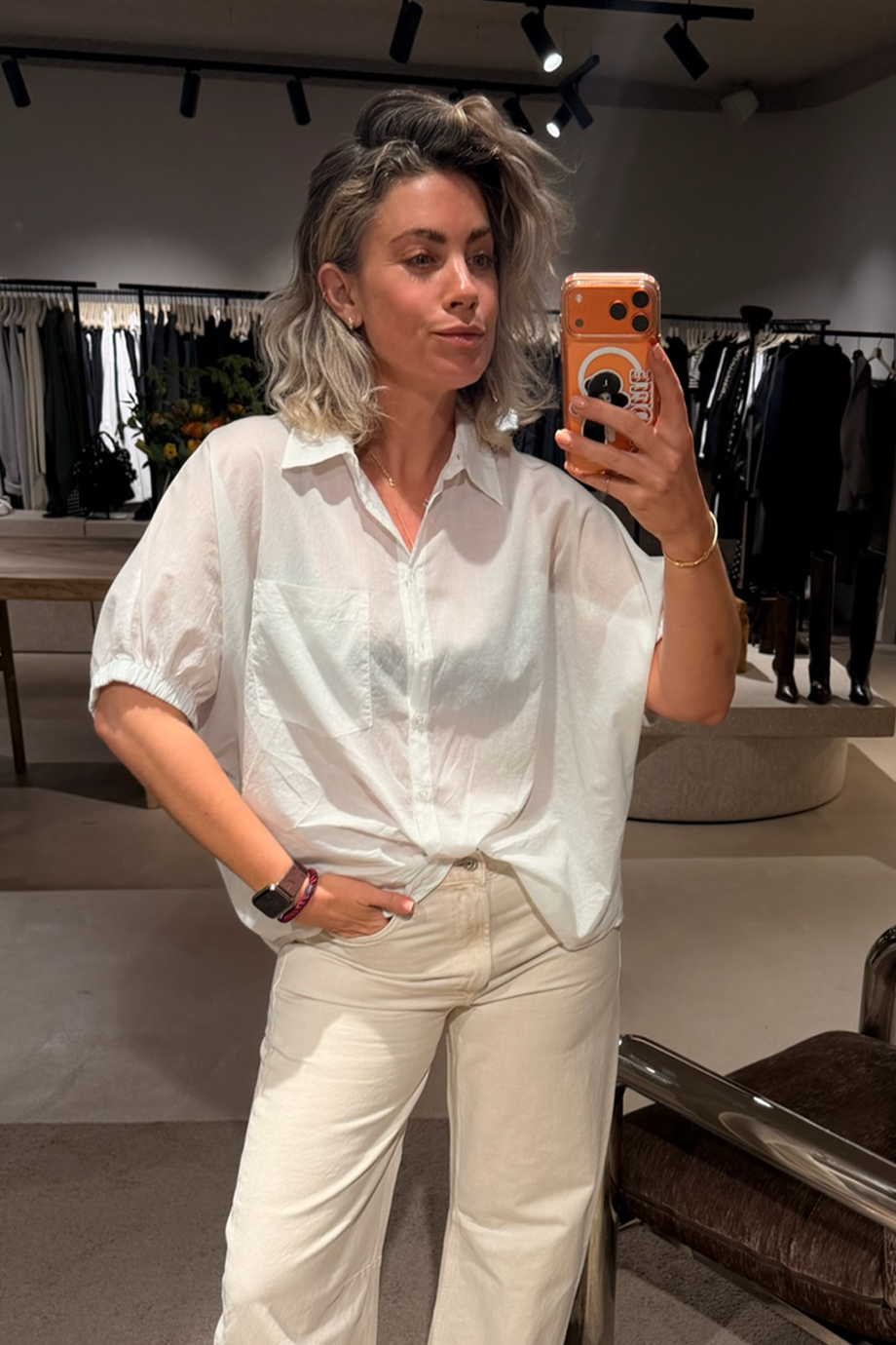 - Het model is 1.73m en draagt maat One Size