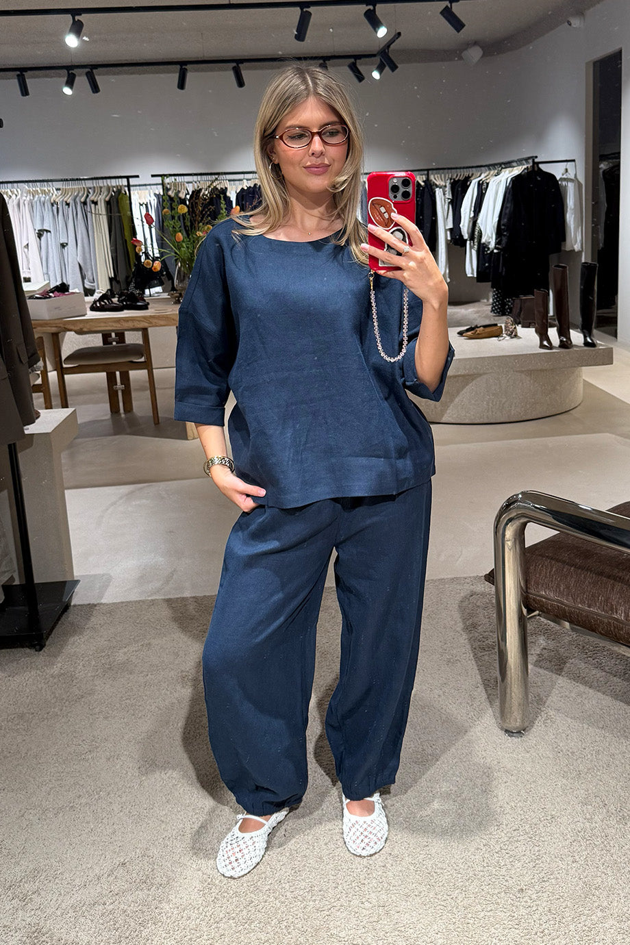 Suzie Kondi Broek - Delos Pants Linen - Deep Navy
