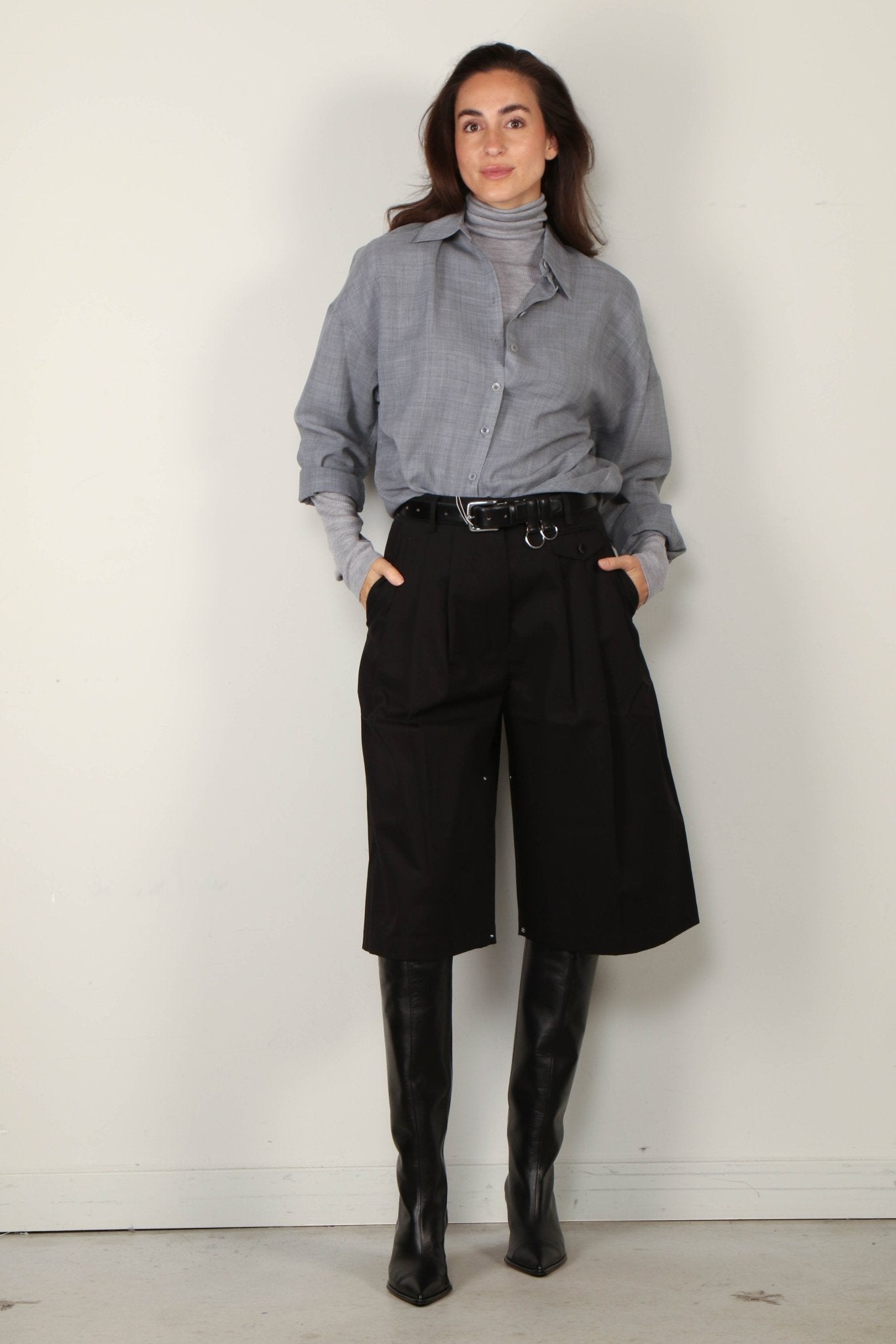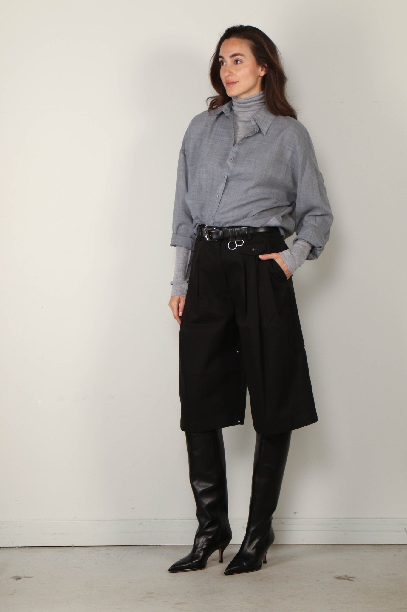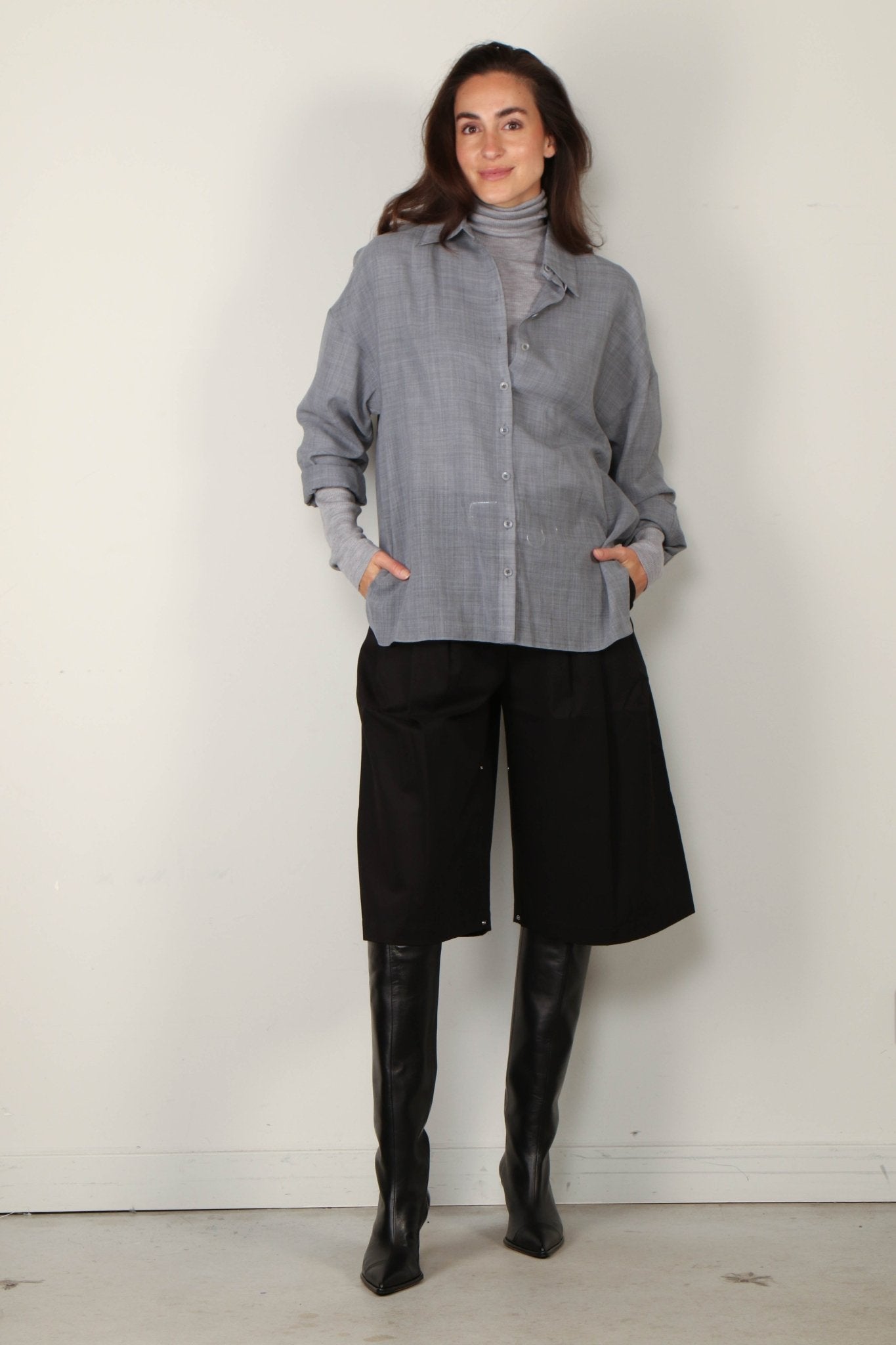 Tibi Blouse - Sheer Wool Gauze Oversized Shirt - Heather Grey