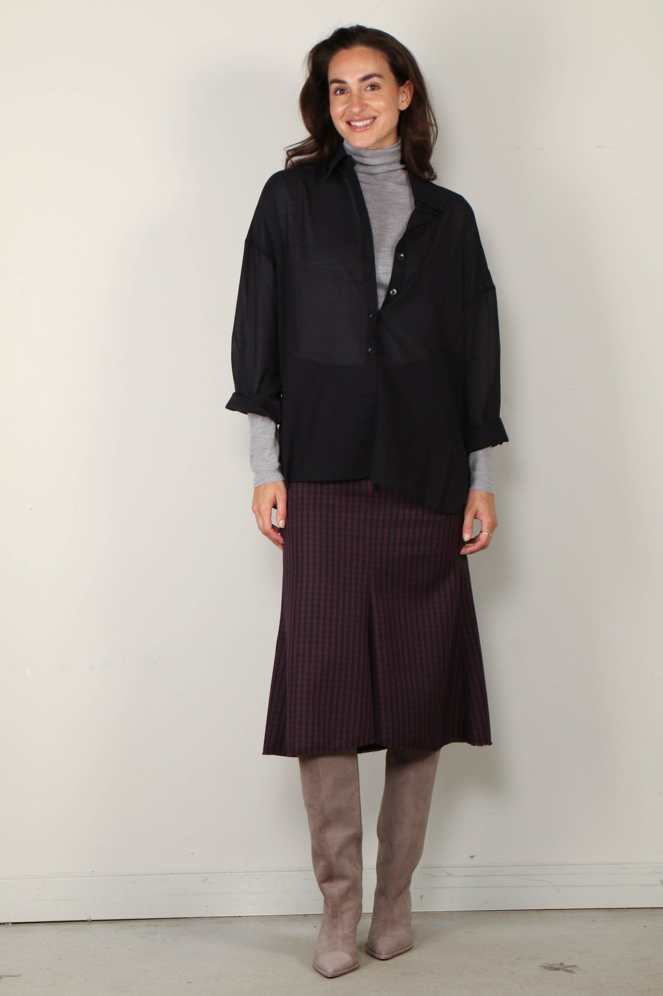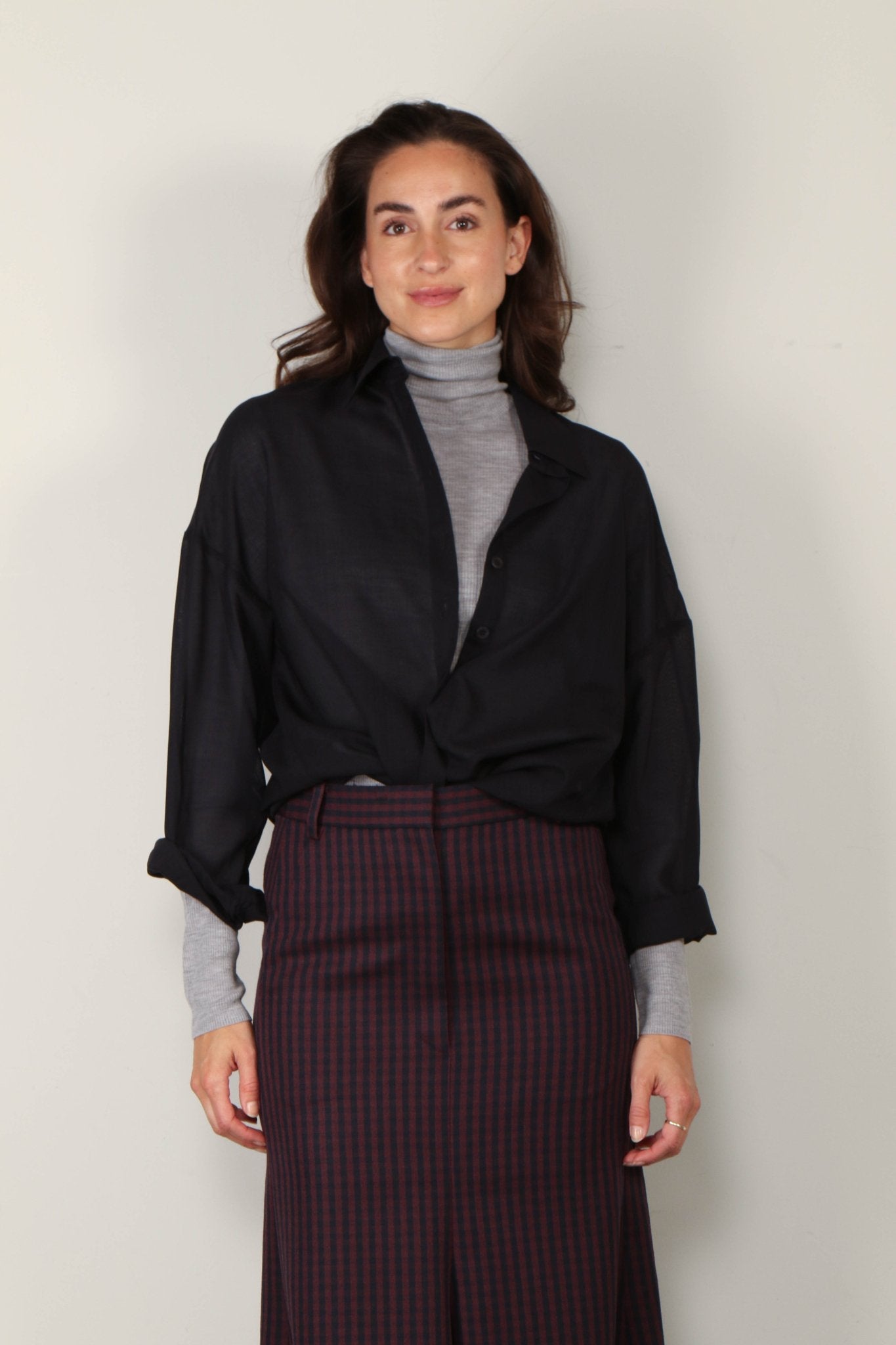 Tibi Blouse - Sheer Wool Gauze Oversized Shirt - Navy