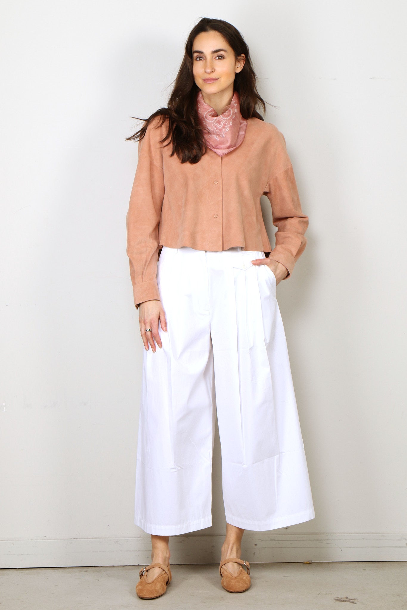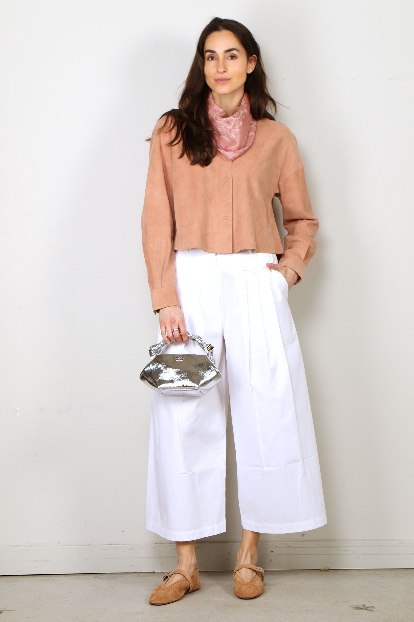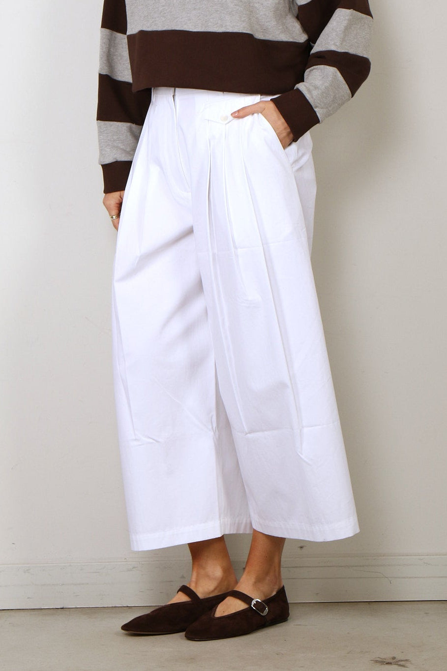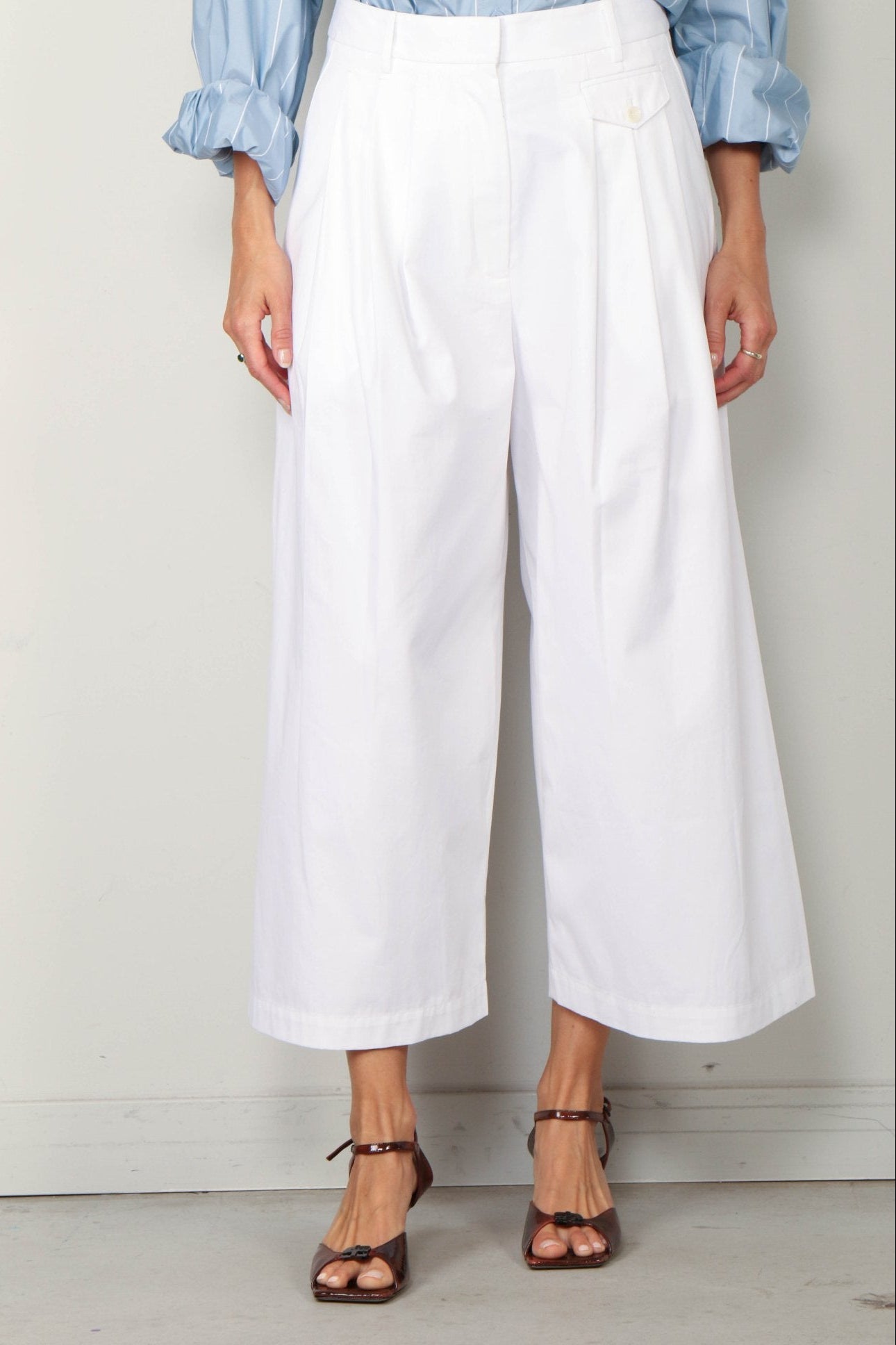 Tibi Broek - Bio twill triple pleat cropped pant - Optic White