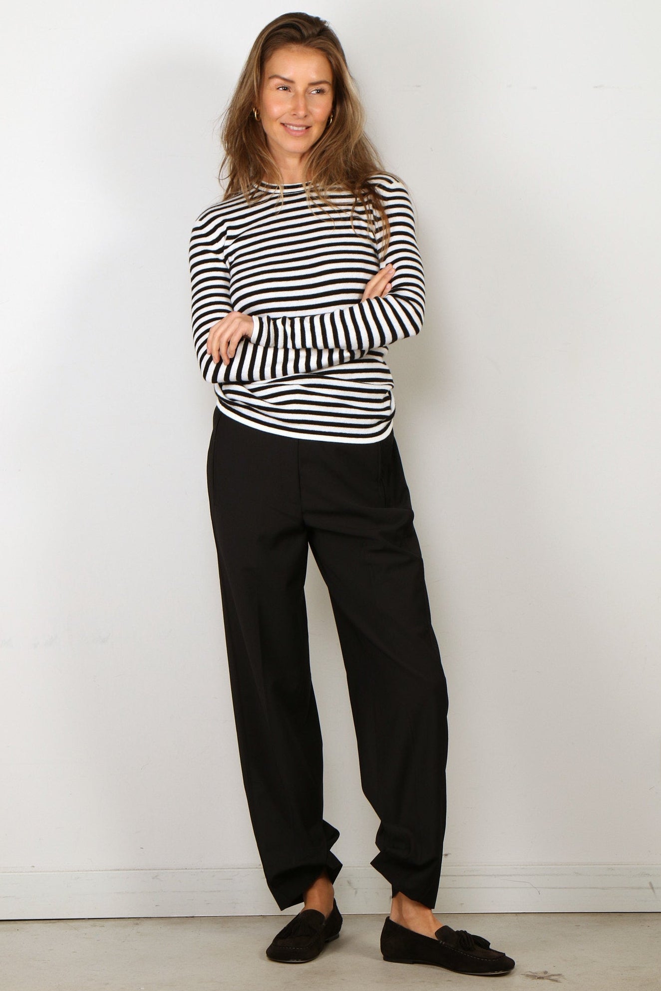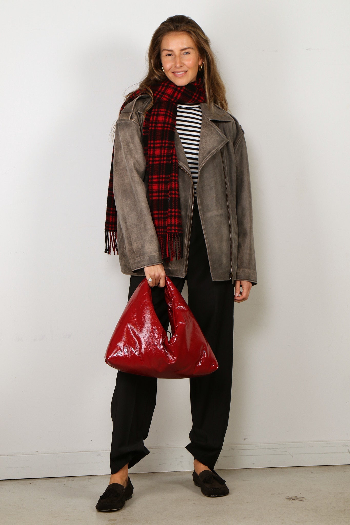 - Het model is 1.79m en draagt maat 4
