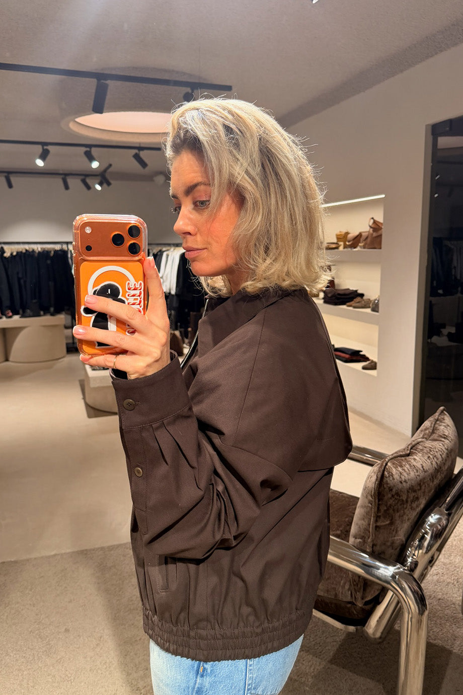 Tibi Jacket - Luxe Spring Twill Bomber - Hickory Brown
