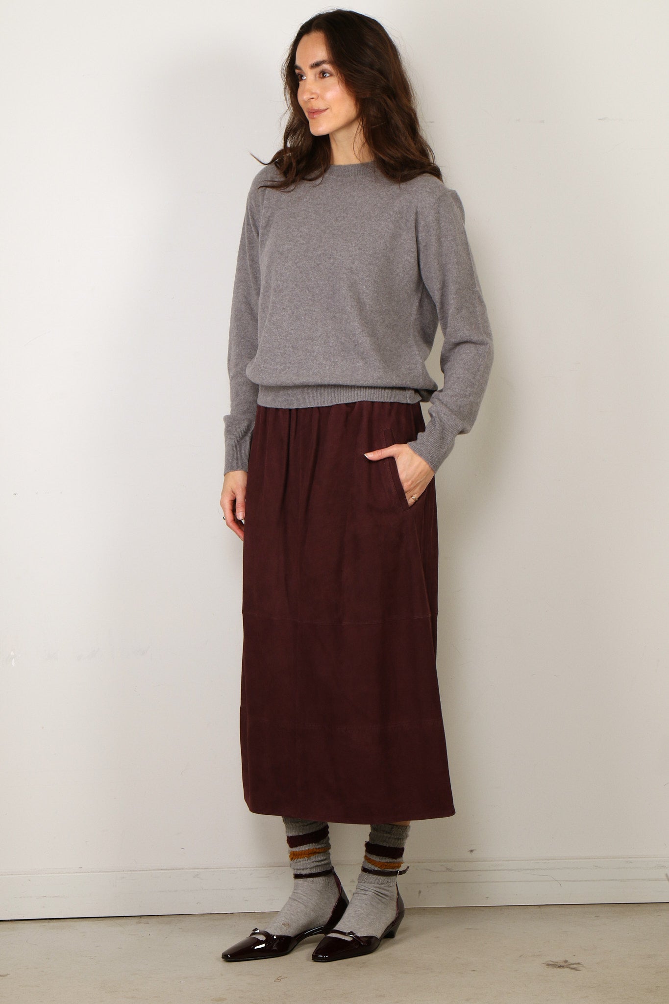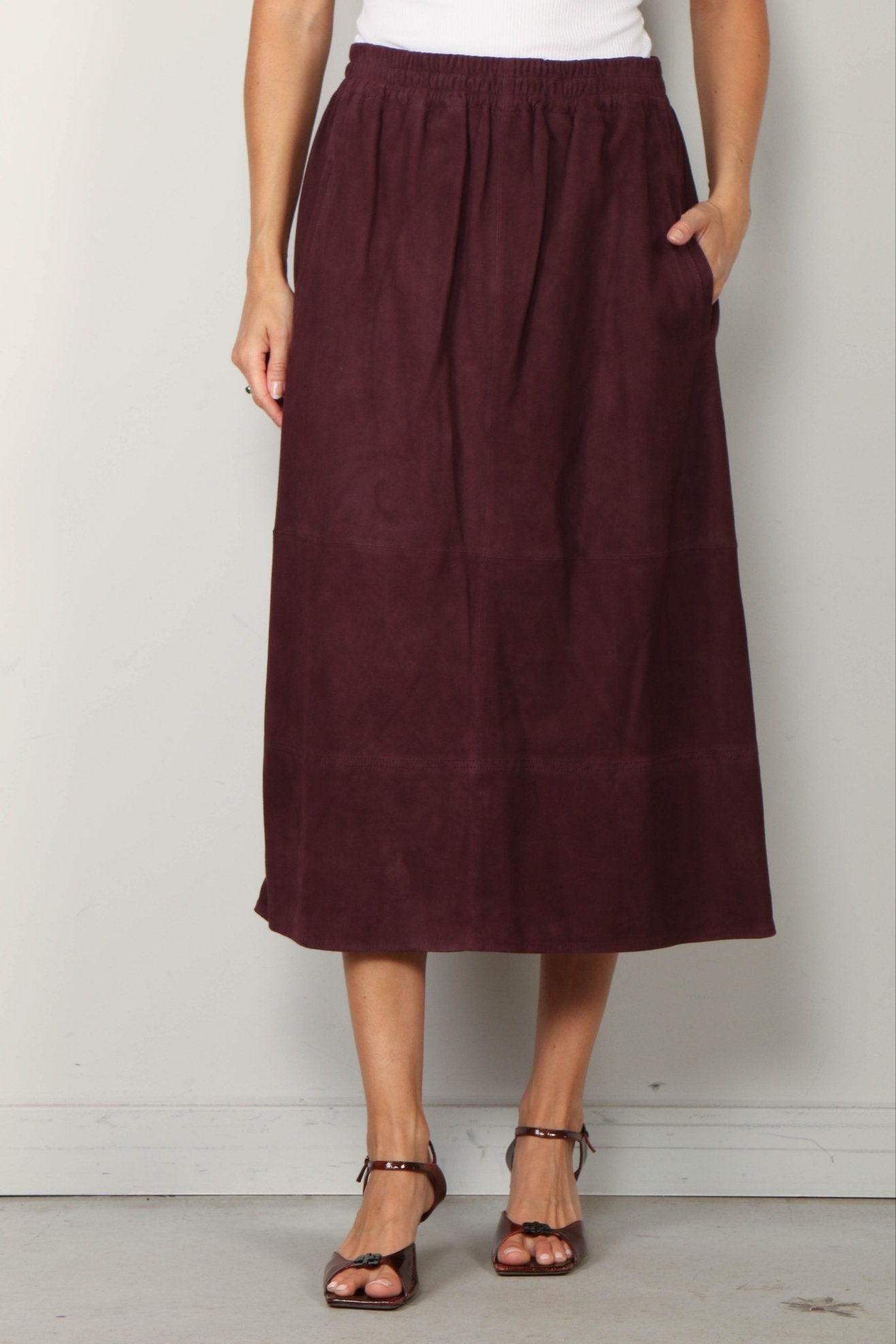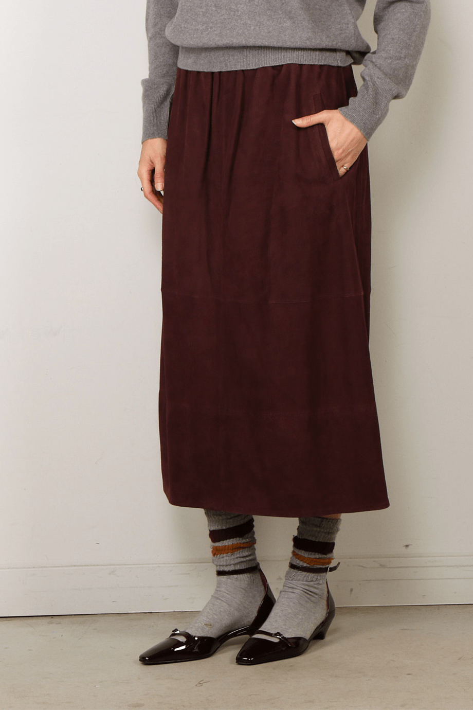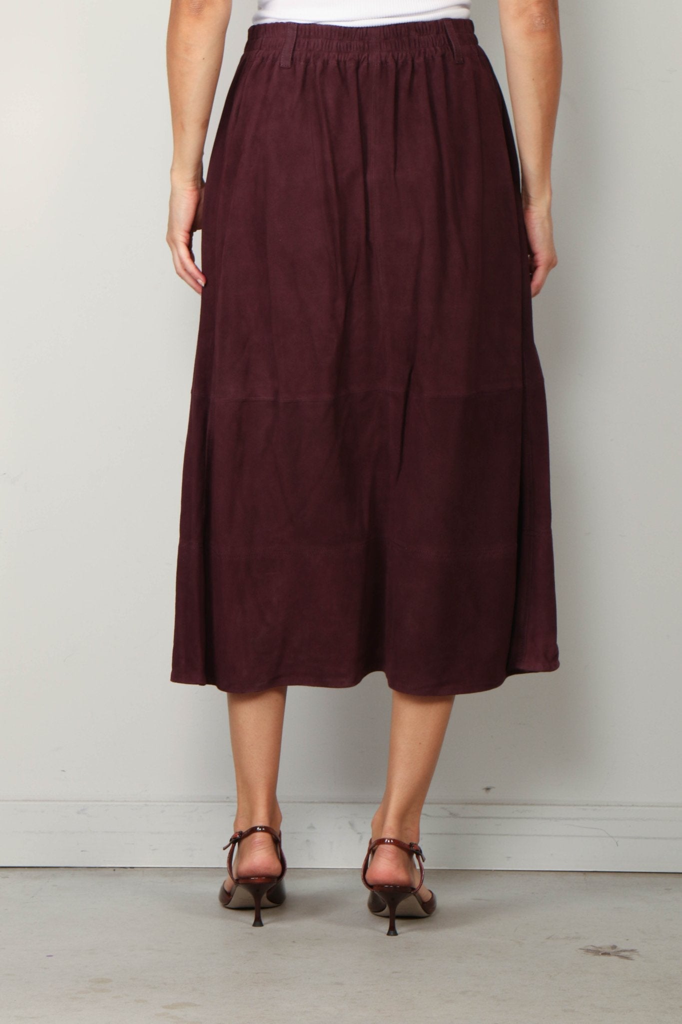 Tibi Rok - Cassiterite suede pull on full skirt - Plum