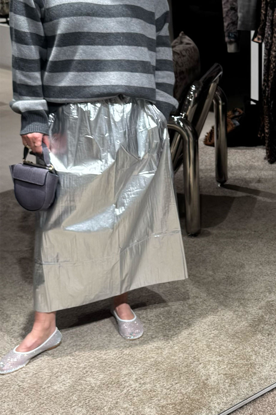 Tibi Rok - Metallic Nylon Pull On Full Skirt - Silver