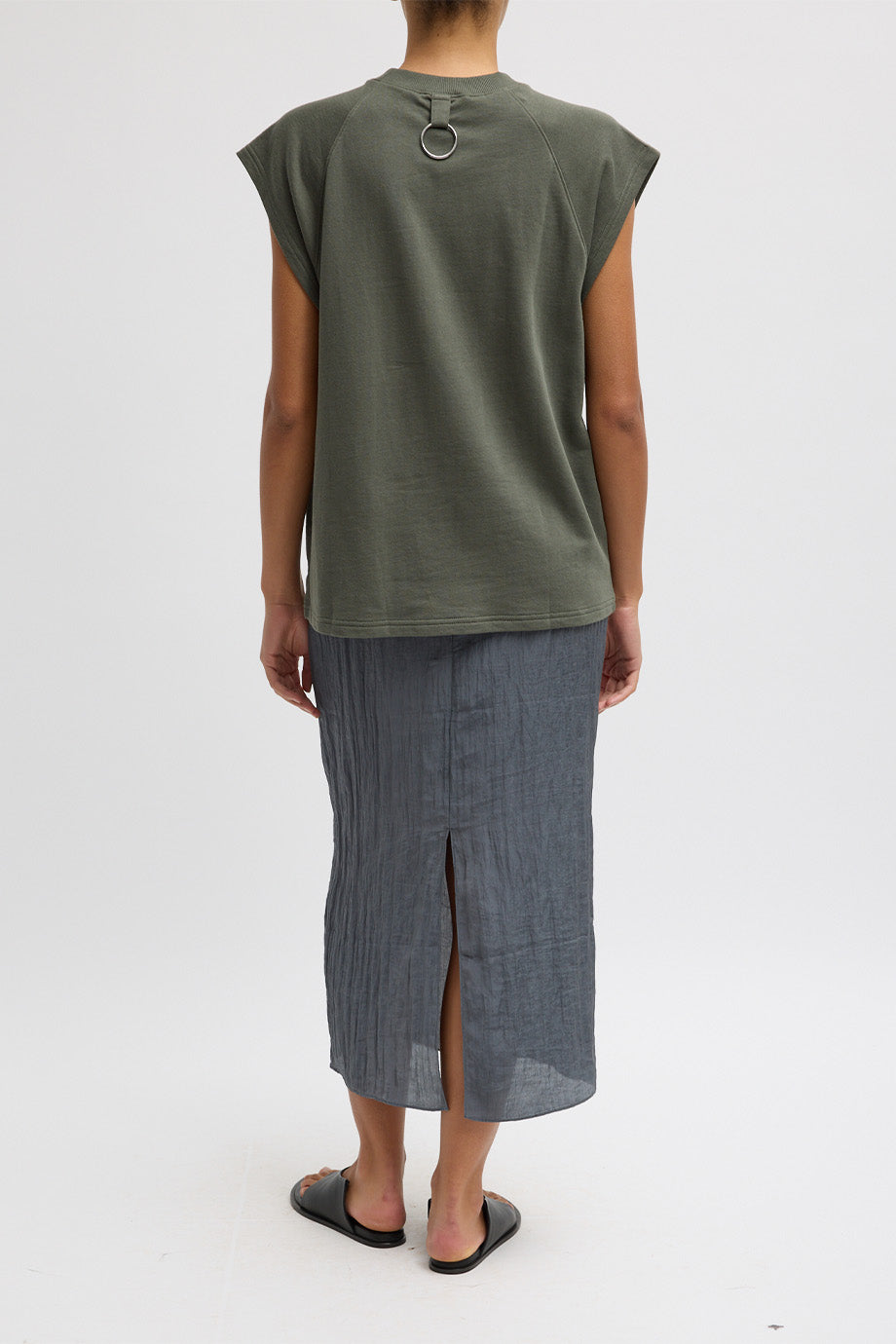 Tibi Top - Light Weight Sweatshirting Sleeveless Easy Top - Olive