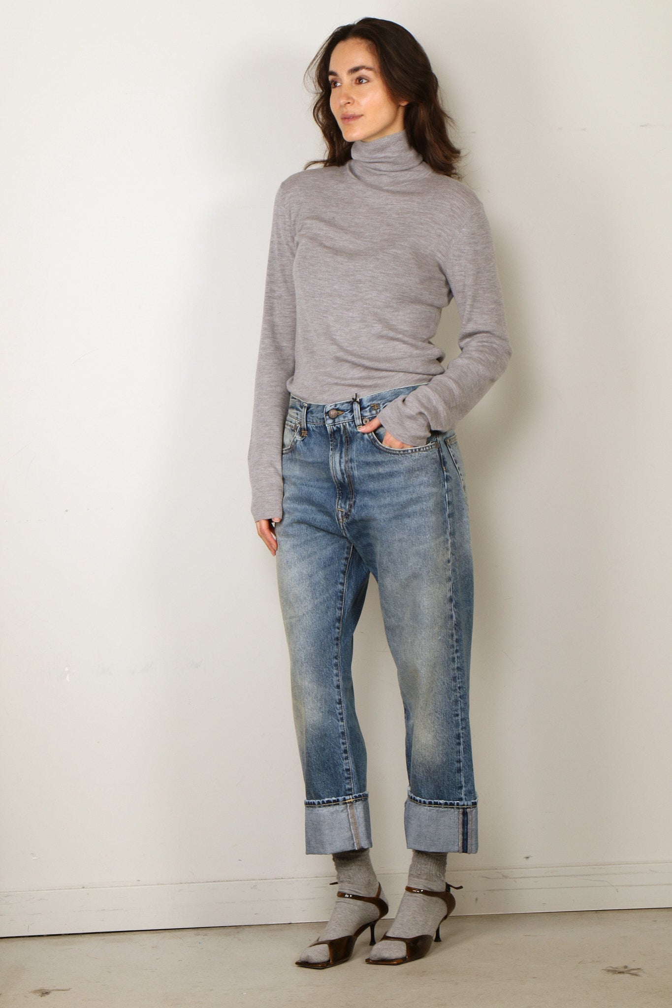 Tibi Trui - Feather Weight Ribbed Sweater Turtle Neck Pullover - Heather Grey