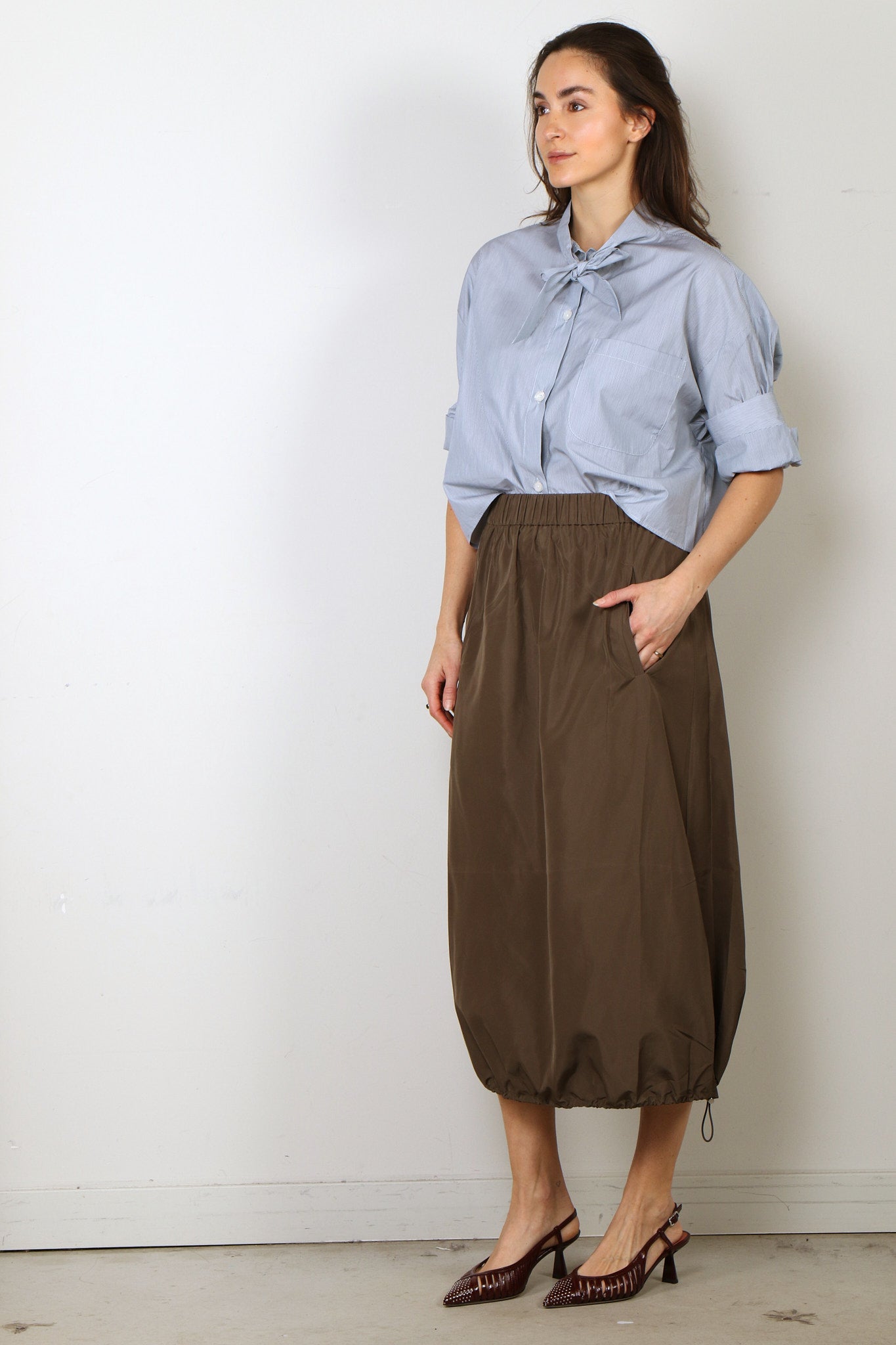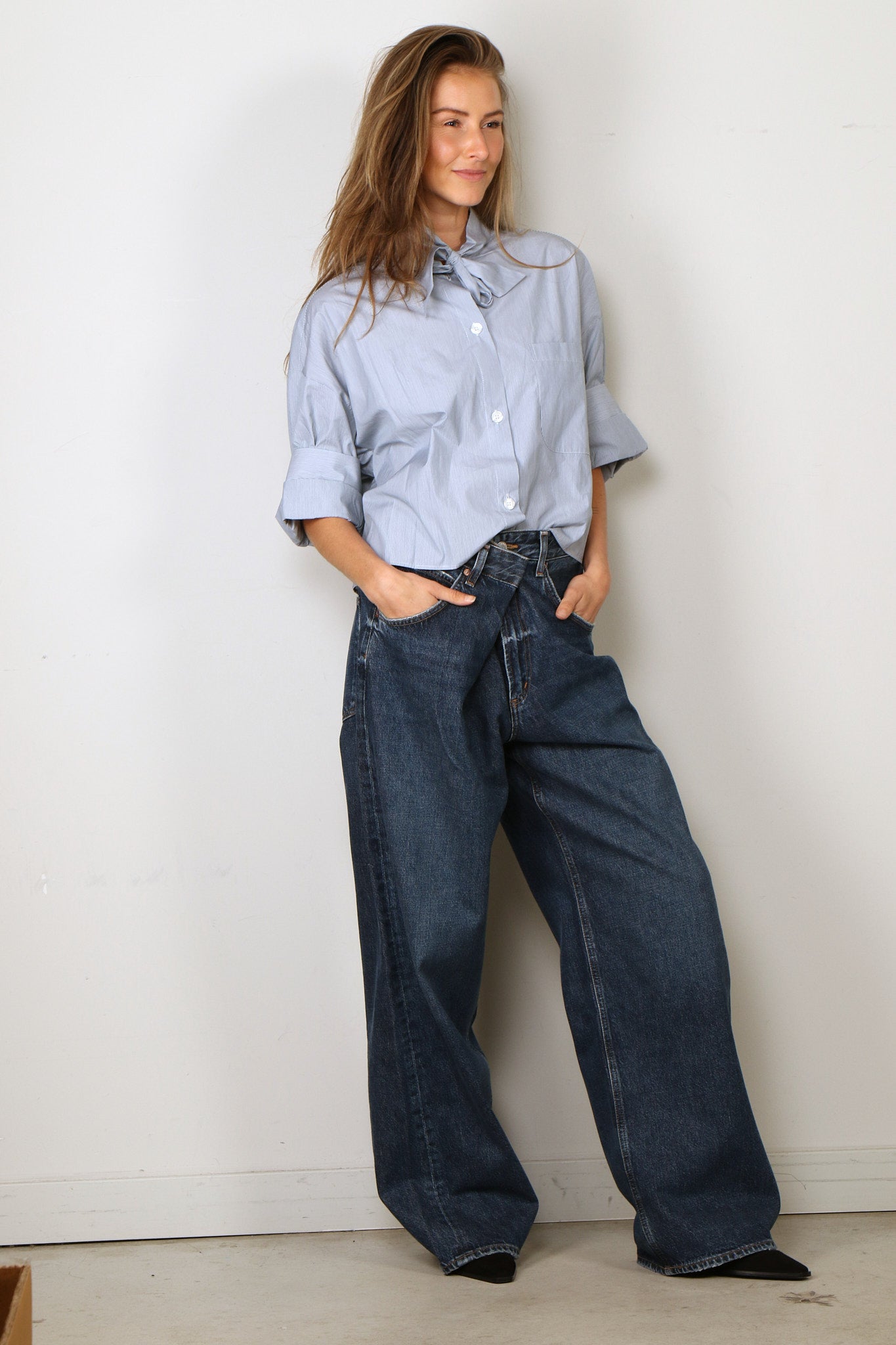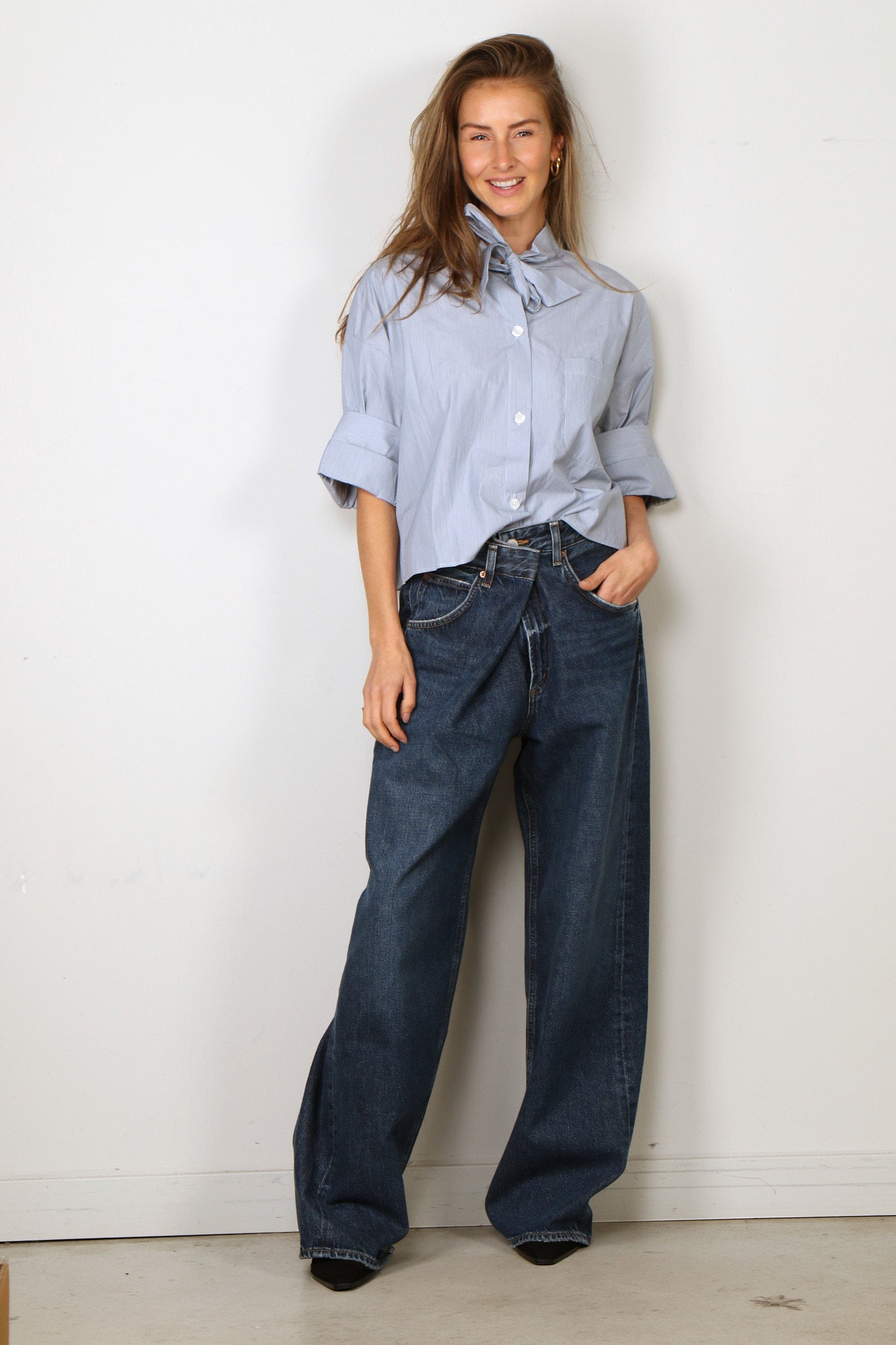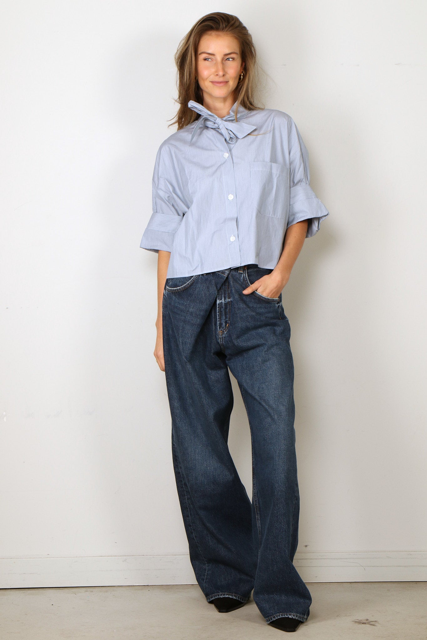 TWP Blouse - Next Ex With Tie - Pinegrove / White