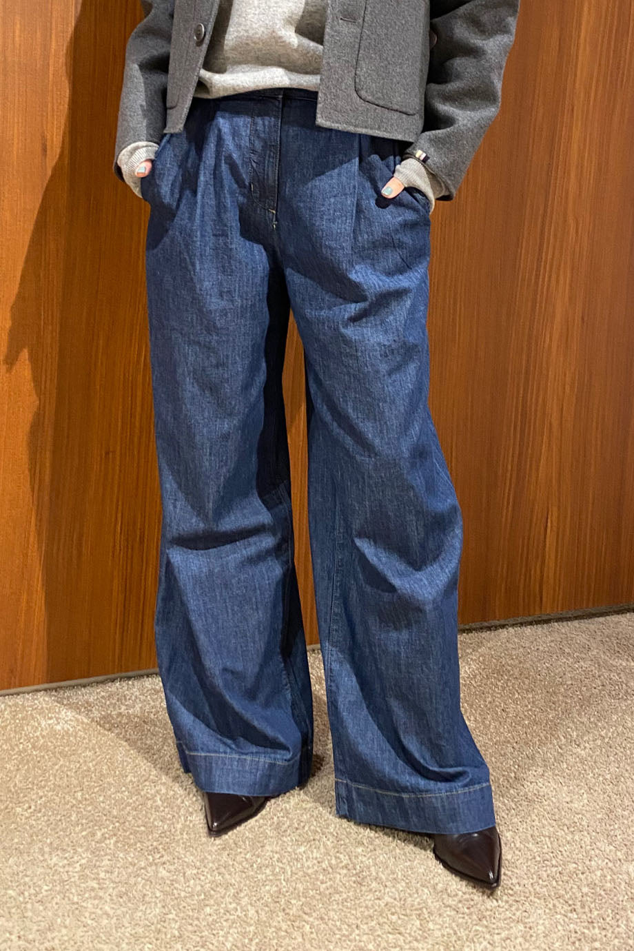 - Het model is 1.79m en draagt maat 27